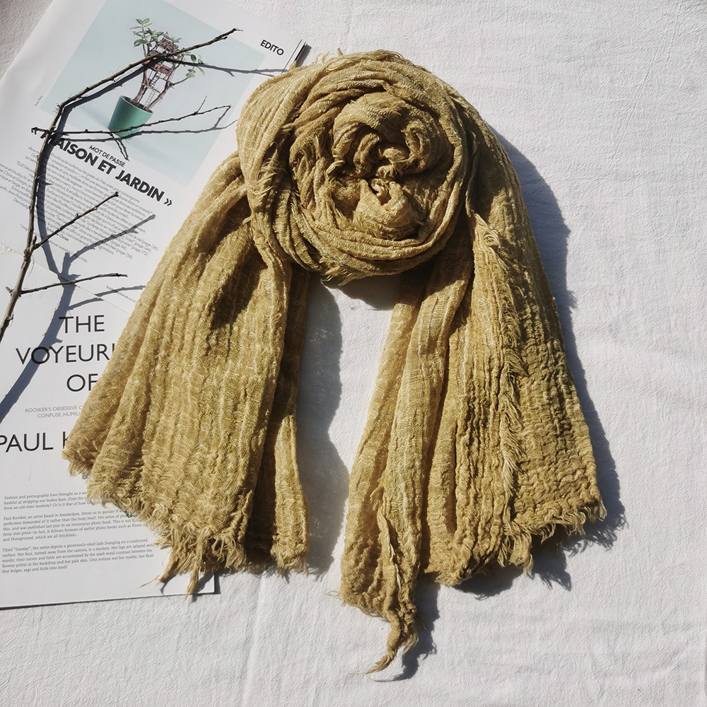단색 면과 린넨 스카프 여성의 가을과 겨울 새로운 더러운 염색 세분화 된 천연 주름 스카프 예술적 숄 대외 무역 스카프 크로스 보더스토어 가기