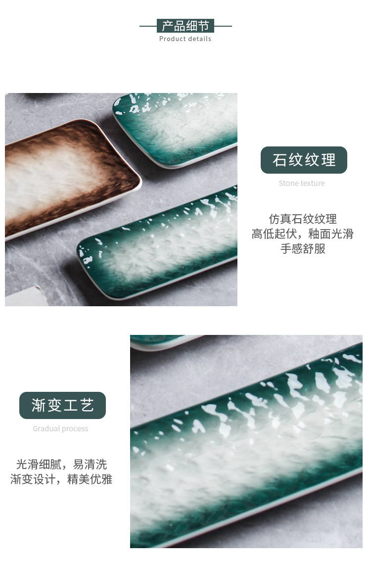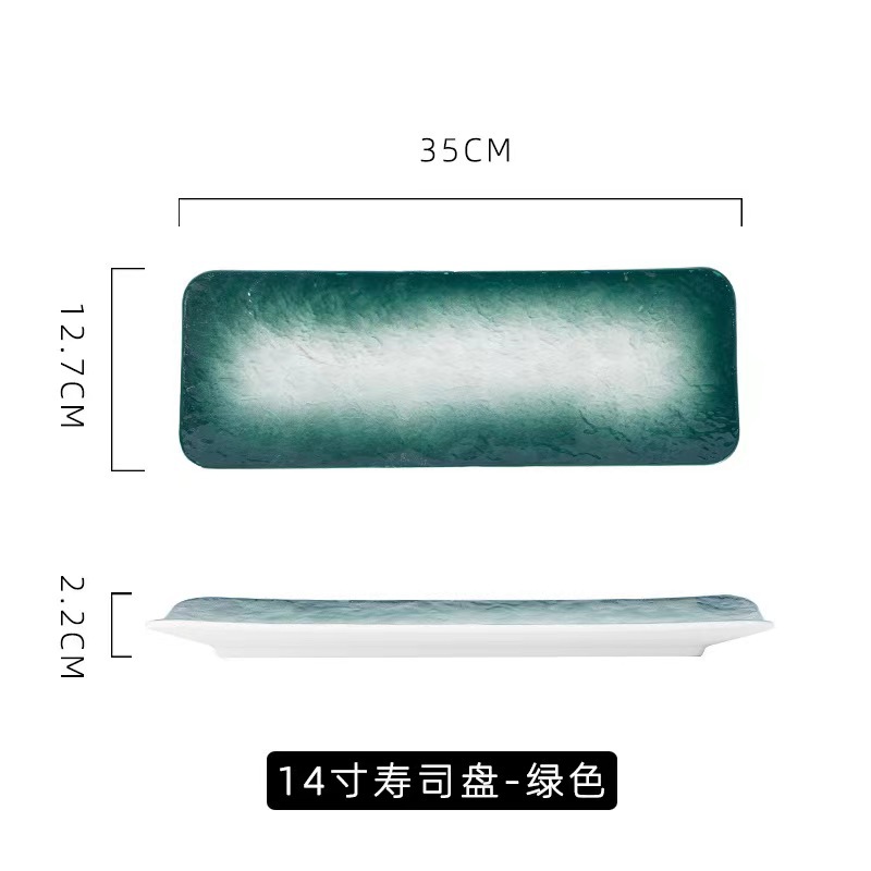 • (스톤 그라데이션 그린) 12 인치 스시 직사각형 접시