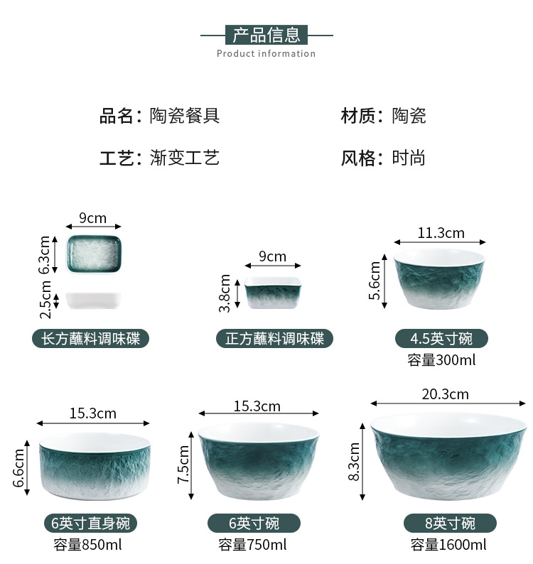 • (스톤 그라디언트 그린) 3.5 "직사각형 딥 접시