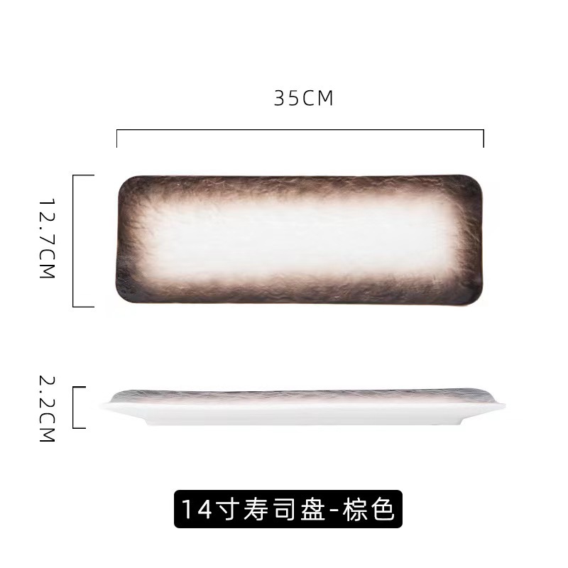 • (돌 그레인 그라데이션 다크 브라운) 12 인치 스시 직사각형 접시