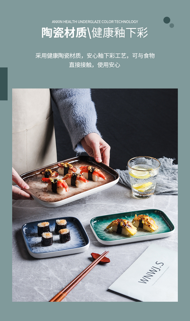 일본식 긴 접시 스시 접시 스낵 접시 사시미 딥 플레이트 가정용 세라믹 창조적 인 식기 직사각형 접시스토어 가기