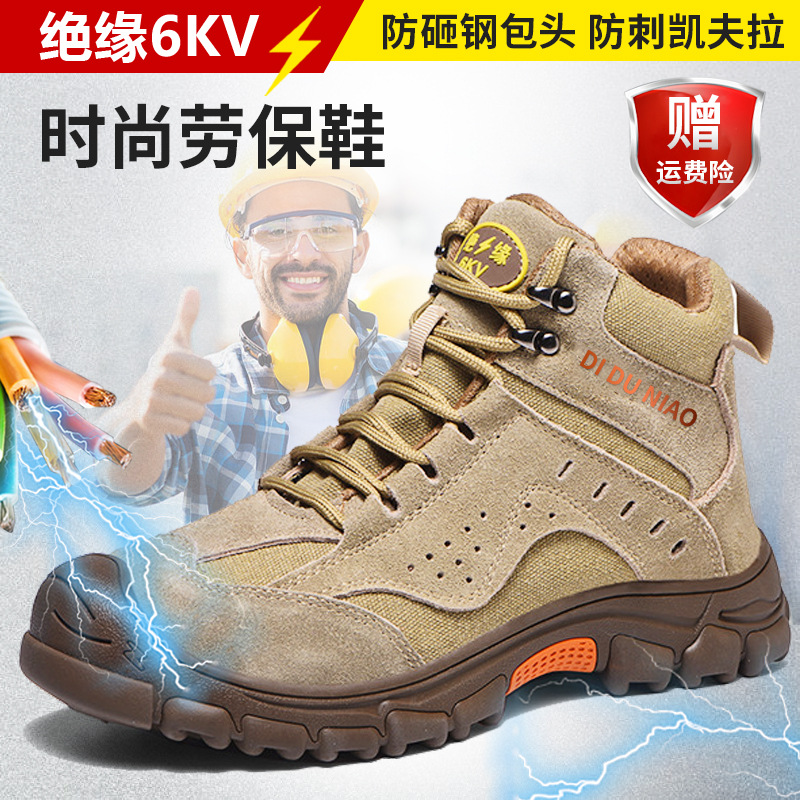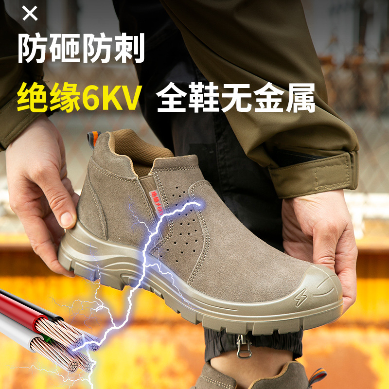 사계절용 남성용 안전화, 부드러운 밑창으로 장시간 서 있어도 발이 피곤하지 않음, 충격 방지 및 관통 방지 안전화, 튼튼하고 내구성 있는 전기기사용 절연화스토어 가기