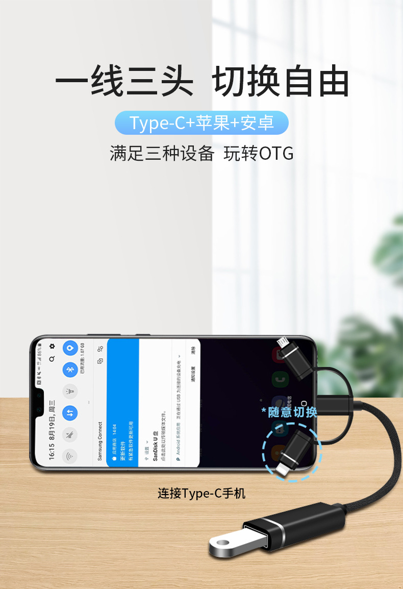 U 디스크 변환 커넥터 Apple typec에서 usbotg 어댑터 케이블에 적합한 다기능 변환 케이블 tpc Android스토어 가기
