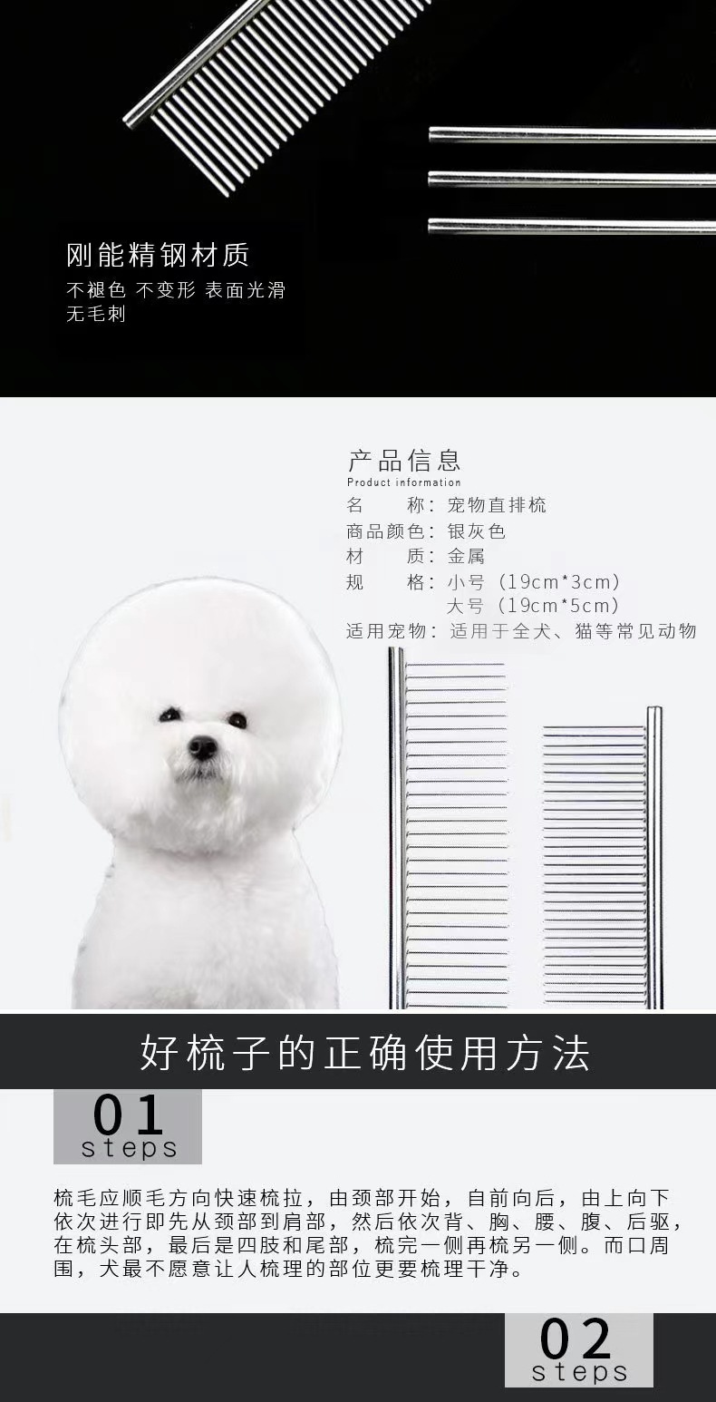애완 동물 강철 빗 1 개 애완 동물 개 미용 전문 용품 철 빗 스테인레스 스틸 테디 사모예드 스트레이트스토어 가기