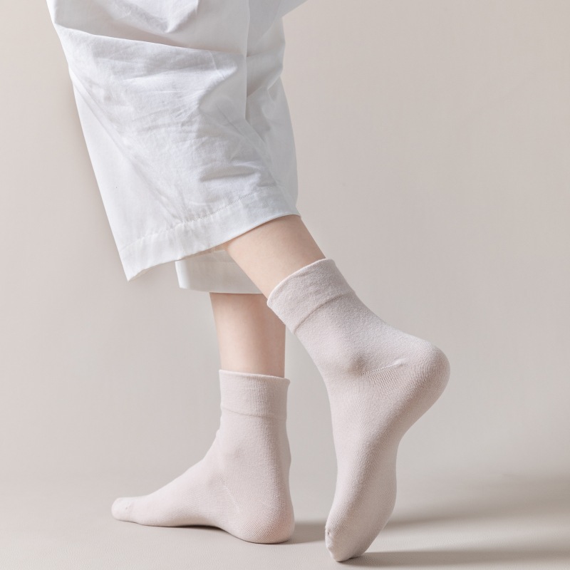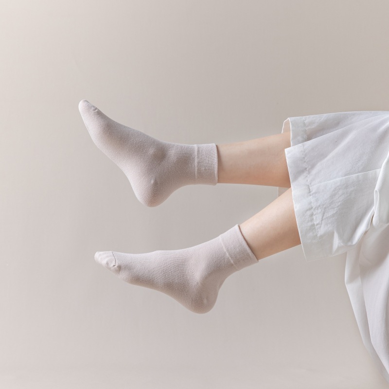 양말 여성용 여름 얇은 단색 면 양말 유행 캐주얼 중간 길이 양말 일본 스타일 달콤한 대학 스타일 더미 양말스토어 가기