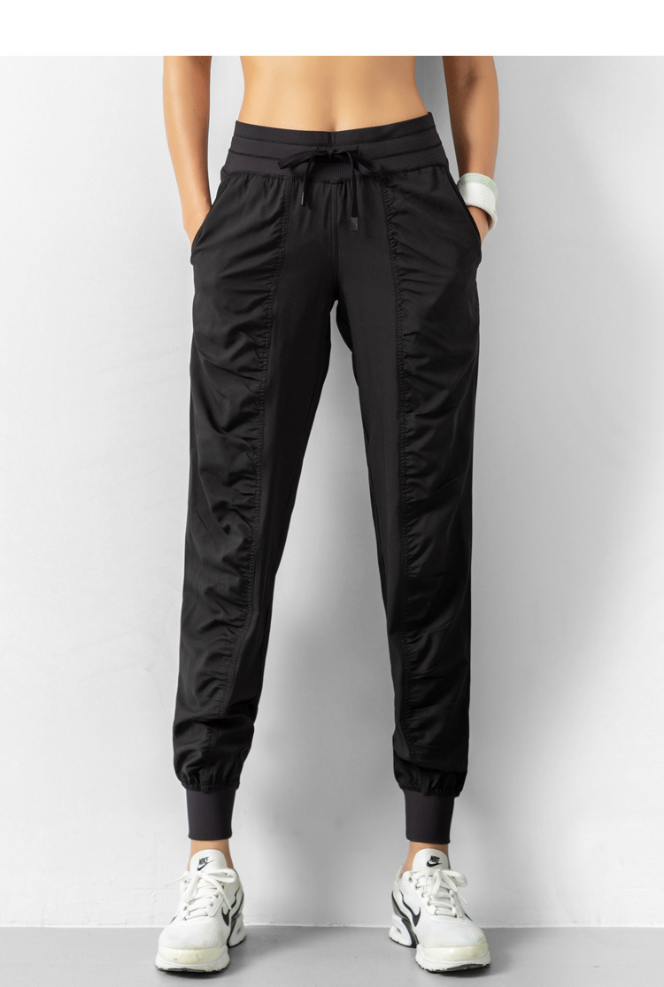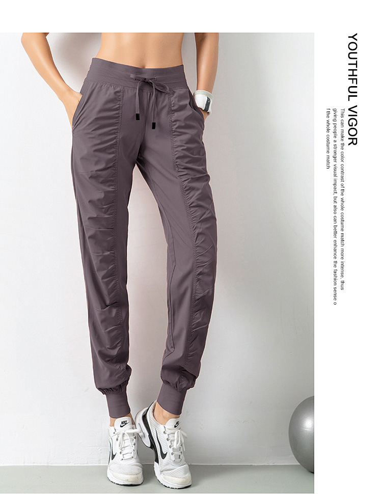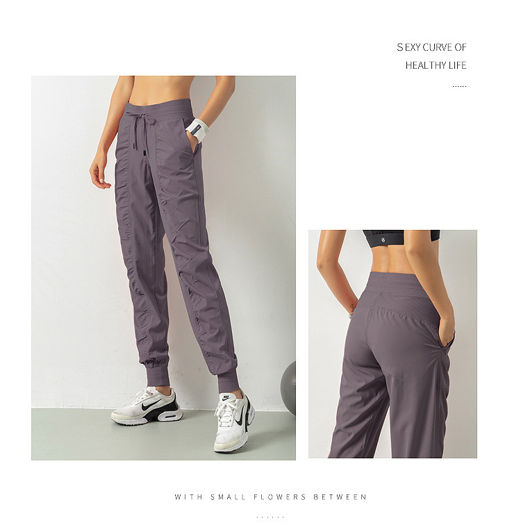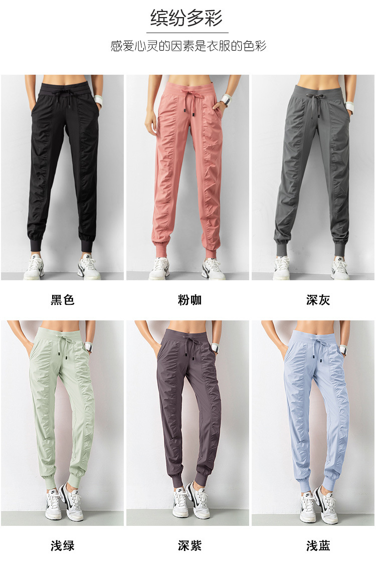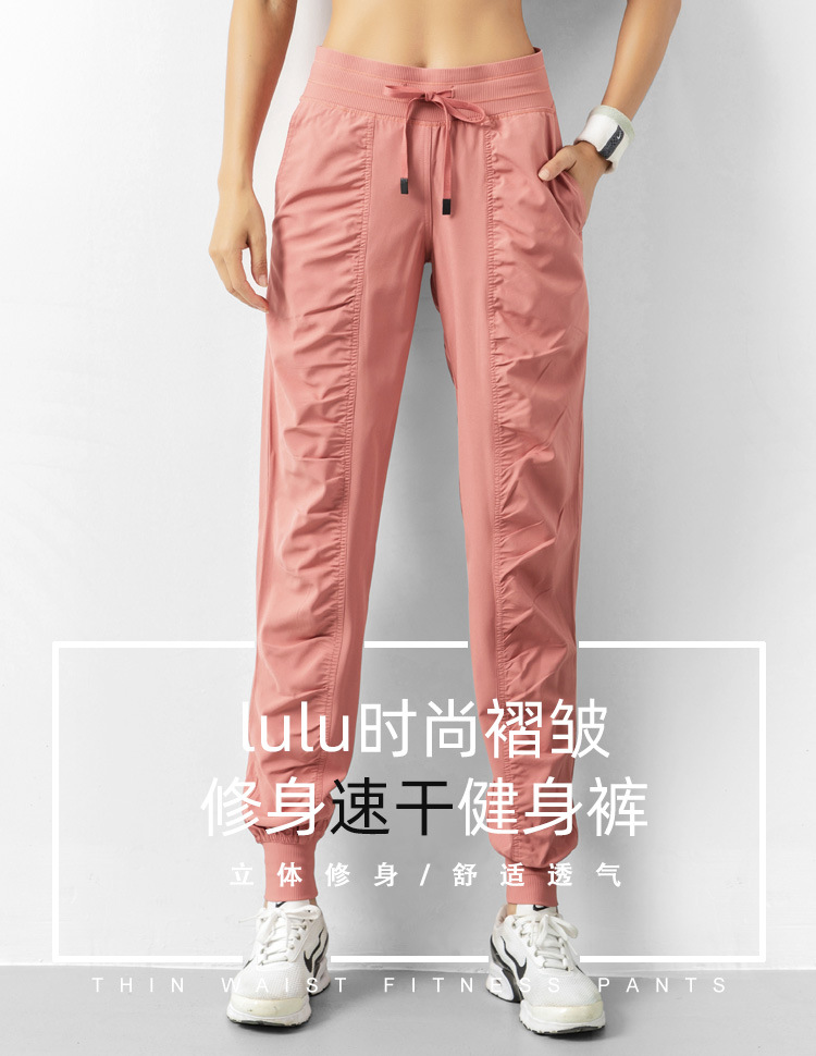 Lulu 크로스 보더 스포츠 바지 여성용 경량 속건 통기성 플리츠 느슨한 슬리밍 캐주얼 러닝 피트니스 바지 여름
