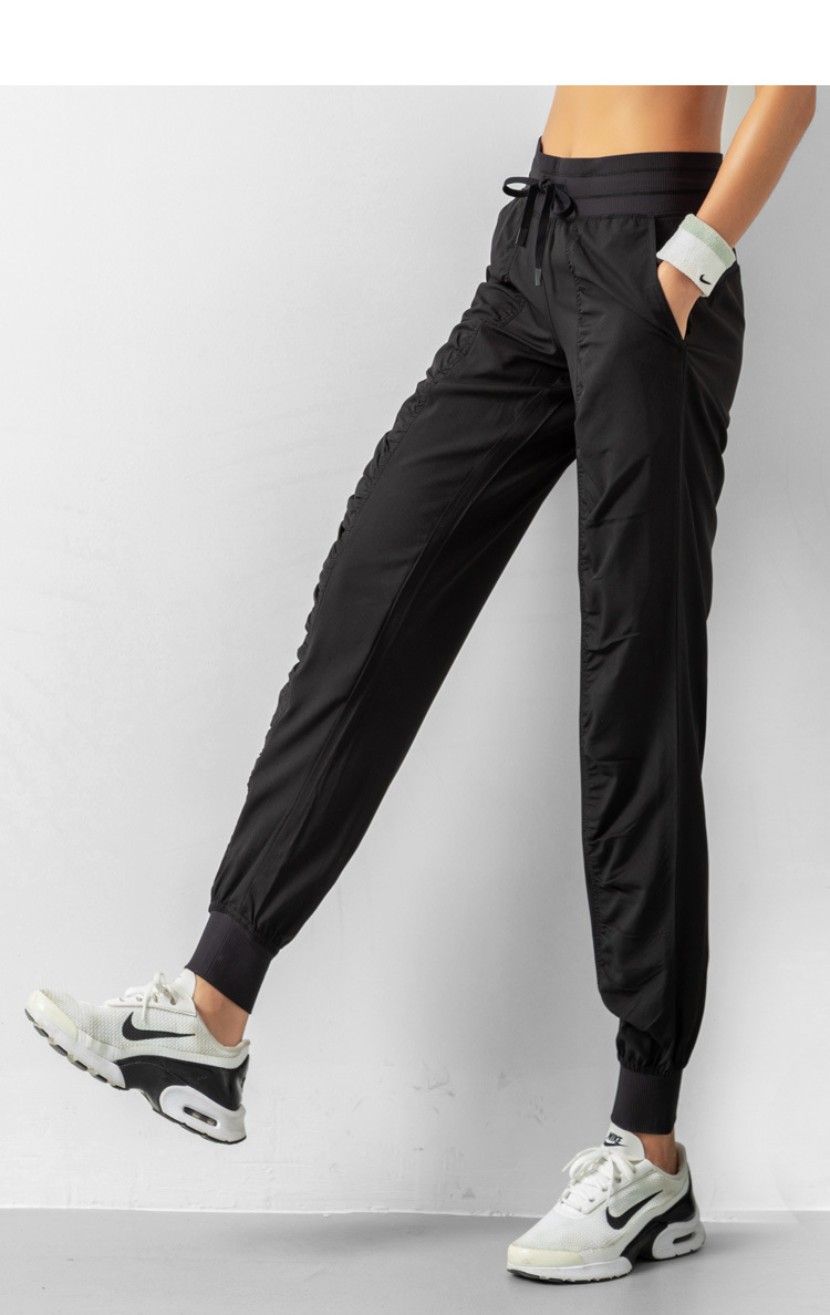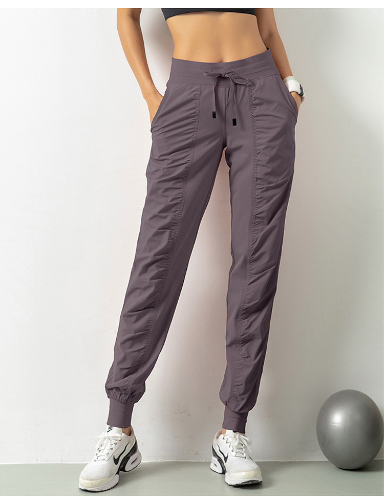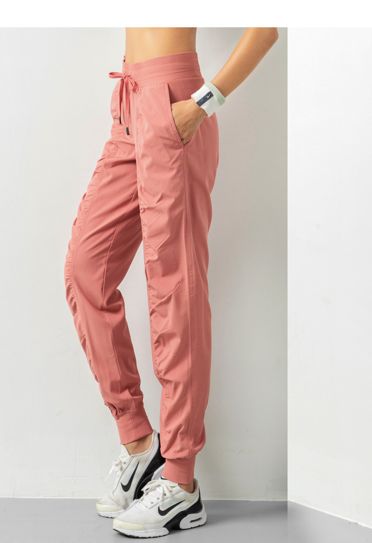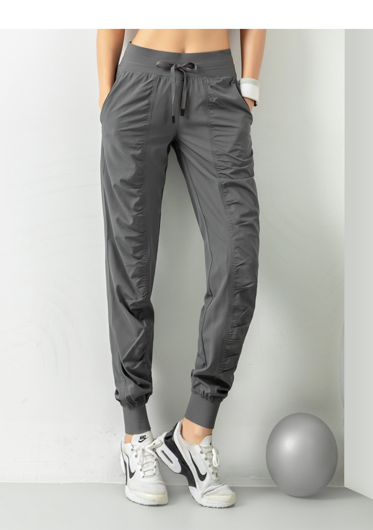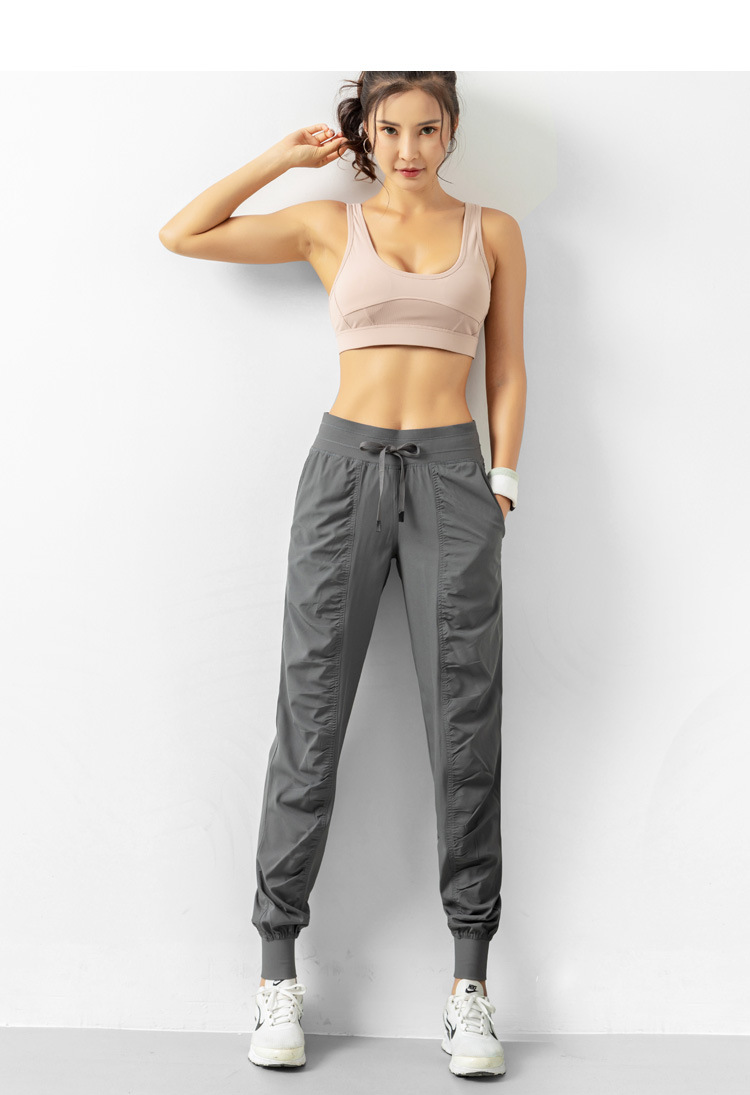 Lulu 크로스 보더 스포츠 바지 여성용 경량 속건 통기성 플리츠 느슨한 슬리밍 캐주얼 러닝 피트니스 바지 여름