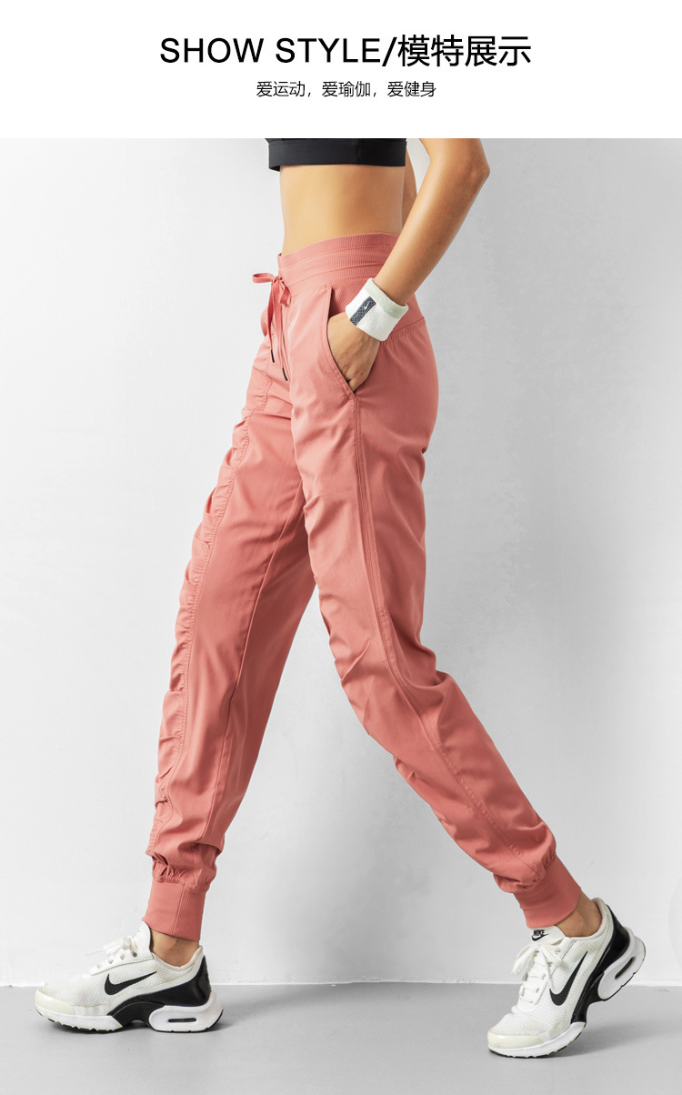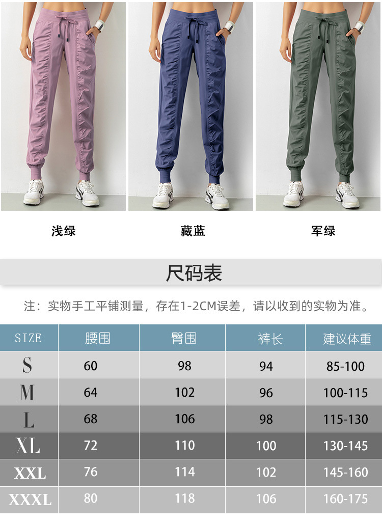 Lulu 크로스 보더 스포츠 바지 여성용 경량 속건 통기성 플리츠 느슨한 슬리밍 캐주얼 러닝 피트니스 바지 여름스토어 가기