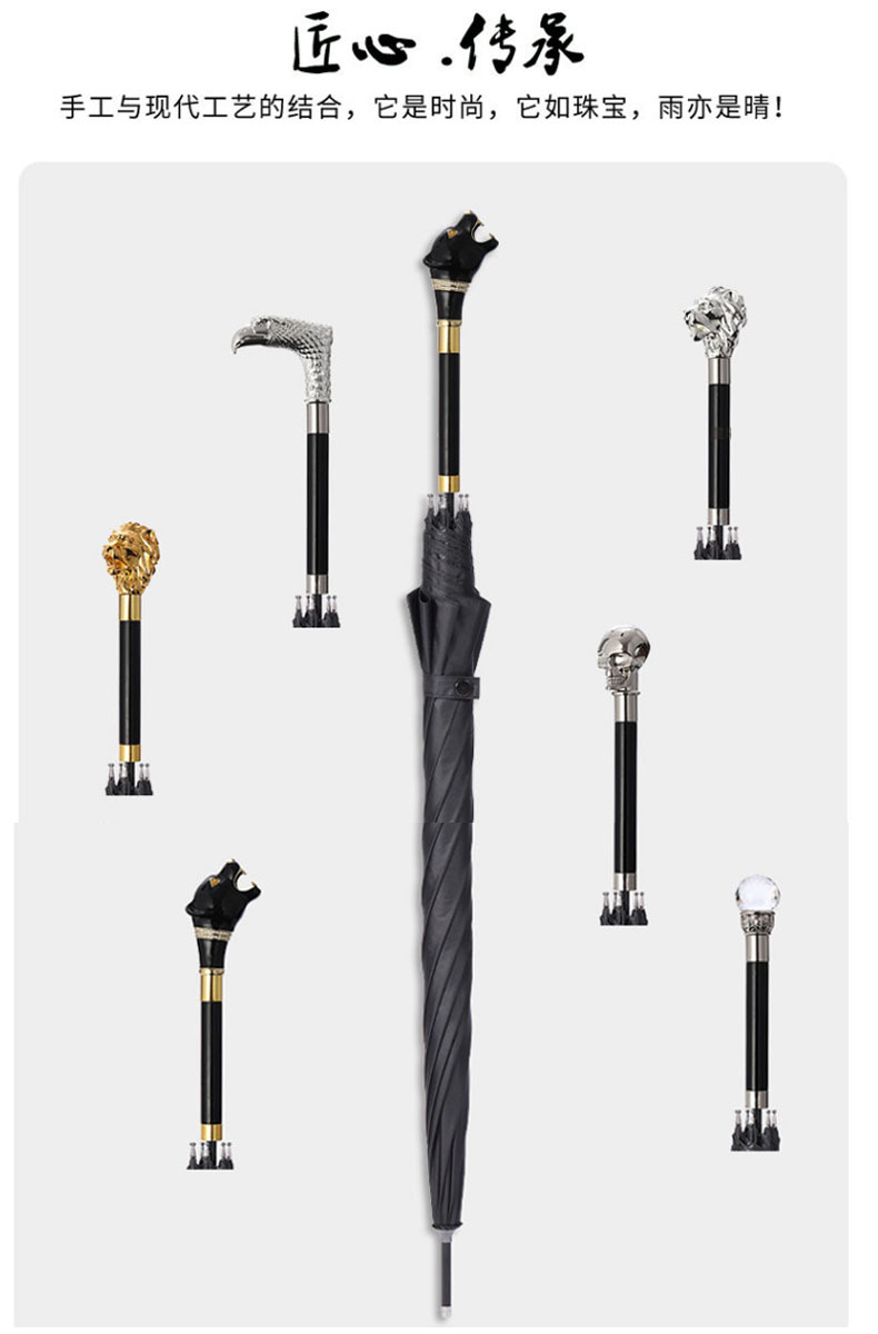 동물 머리 우산 스트레이트 막대 자동 비닐 태양 보호 써니 우산 해골 사자 표범 우산 남자 빈티지 우산스토어 가기