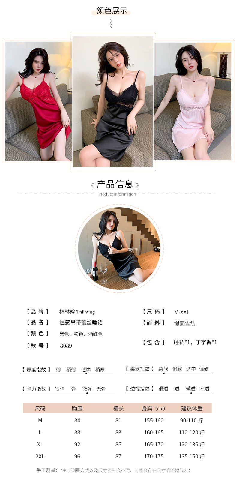 린 린팅 새로운 스타일 섹시 란제리 슬링 잠옷 여자의 섹시한 잠옷 가슴 패드 새틴 가정 옷 8089스토어 가기