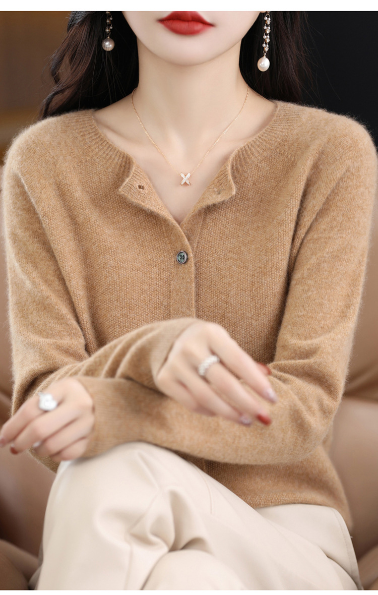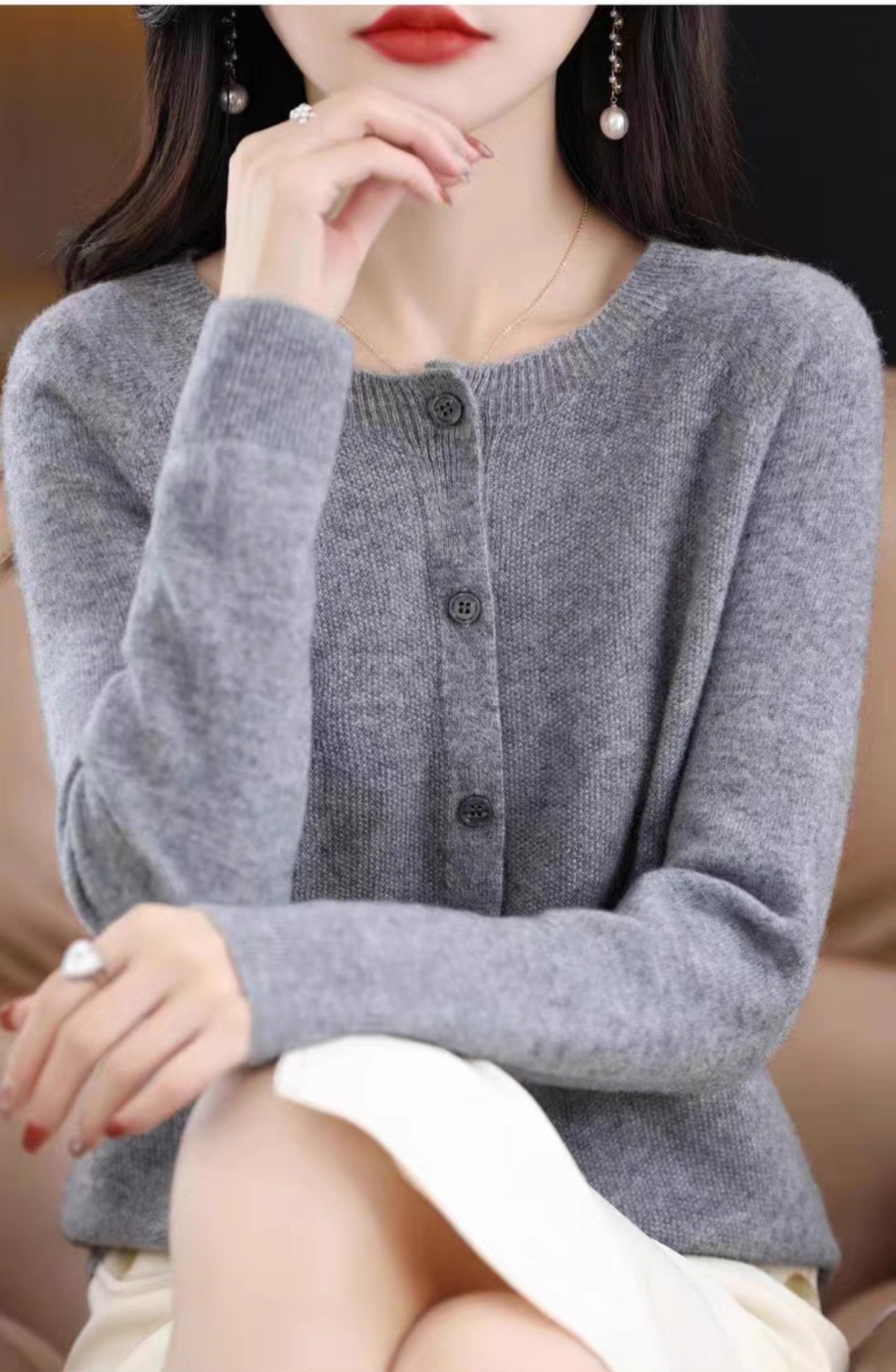 25 봄, 가을 새로운 스타일 100 울 스웨터 여성 일선 기성복 스웨터 카디건 솔리드 컬러 캐주얼 울 스웨터 재킷