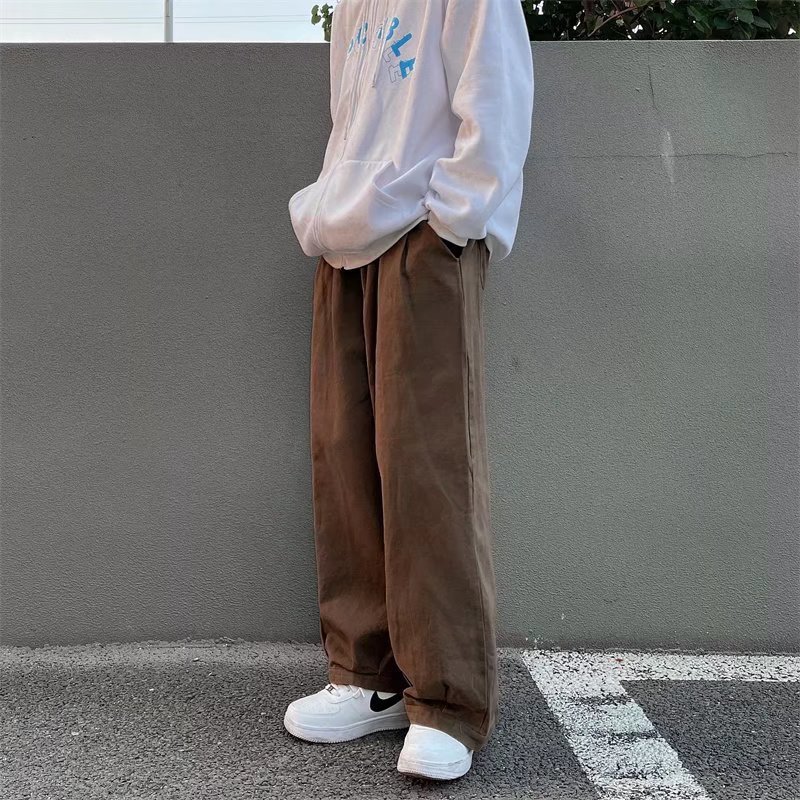 가을과 겨울 발목 길이 바지 면 청소년 캐주얼 중간 허리 마이크로 탄성 다크 브라운 재고 단색 일반 바지스토어 가기