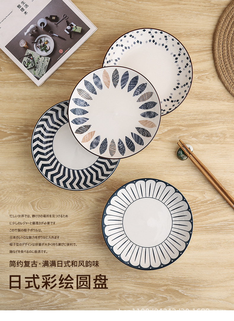 Underglaze 색 일본식 깊은 접시 수프 접시 접시 가정용 2022 새로운 스타일 세라믹 그릇 접시 높은 색 값 식기 식사 접시