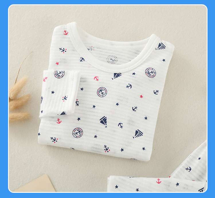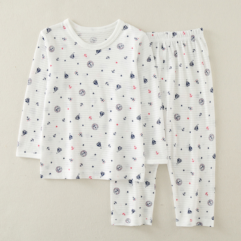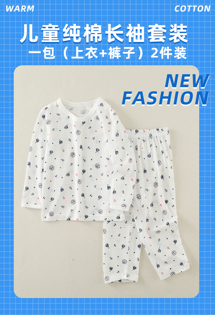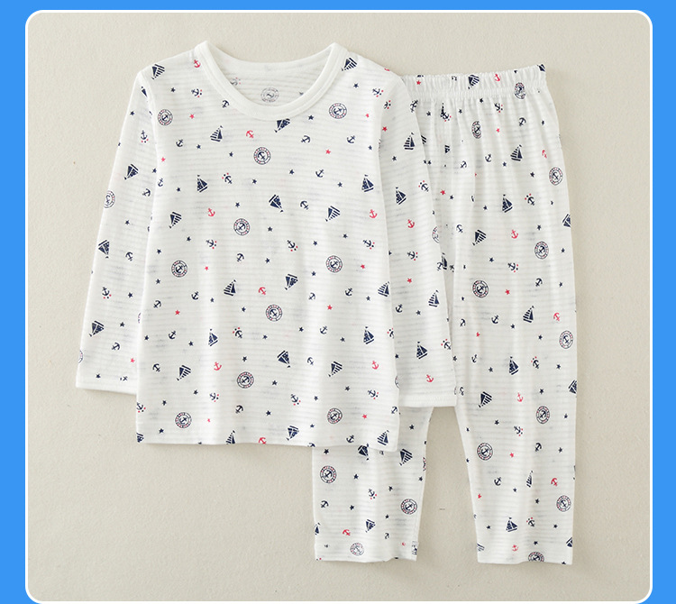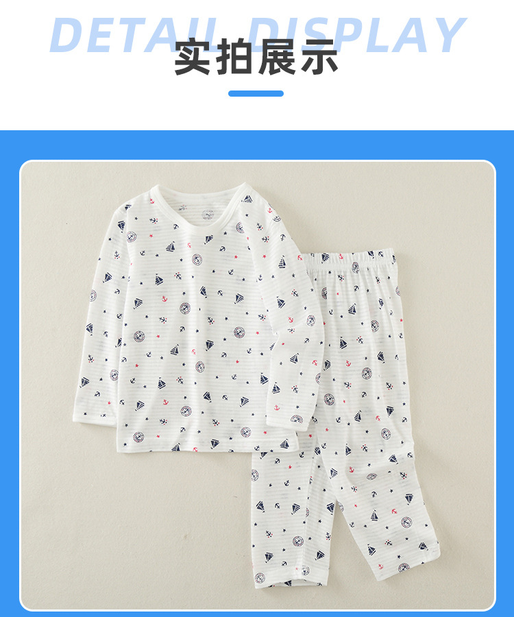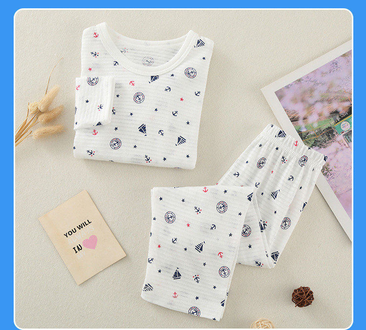 어린이 잠옷 여름 얇은 긴팔 세트 100% 면 소년의 긴팔 가정복 어린이 의류 아기 에어컨 옷스토어 가기