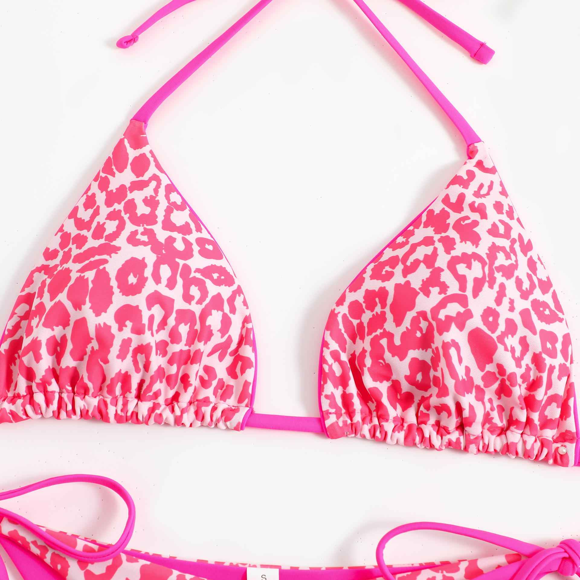 2023 유럽과 미국의 외국 싱글 비키니 레오파드 무늬 단색 섹시한 스플릿 수영복 여성용 삼각형 가방 나는 수영복스토어 가기