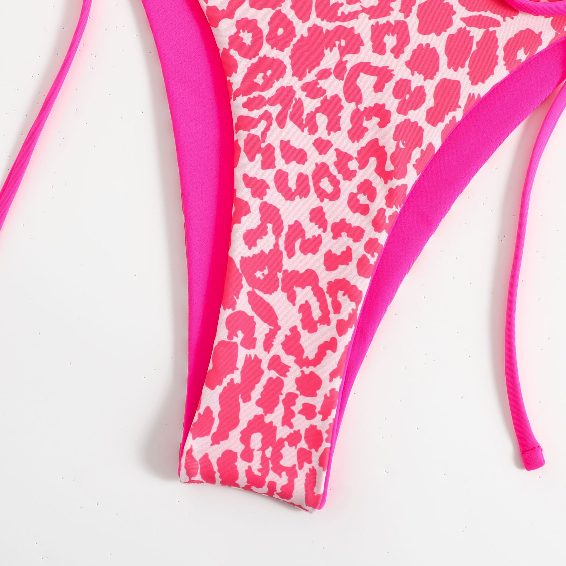 2023 유럽과 미국의 외국 싱글 비키니 레오파드 무늬 단색 섹시한 스플릿 수영복 여성용 삼각형 가방 나는 수영복