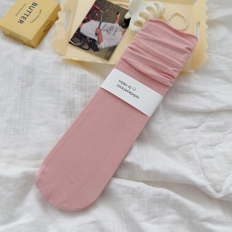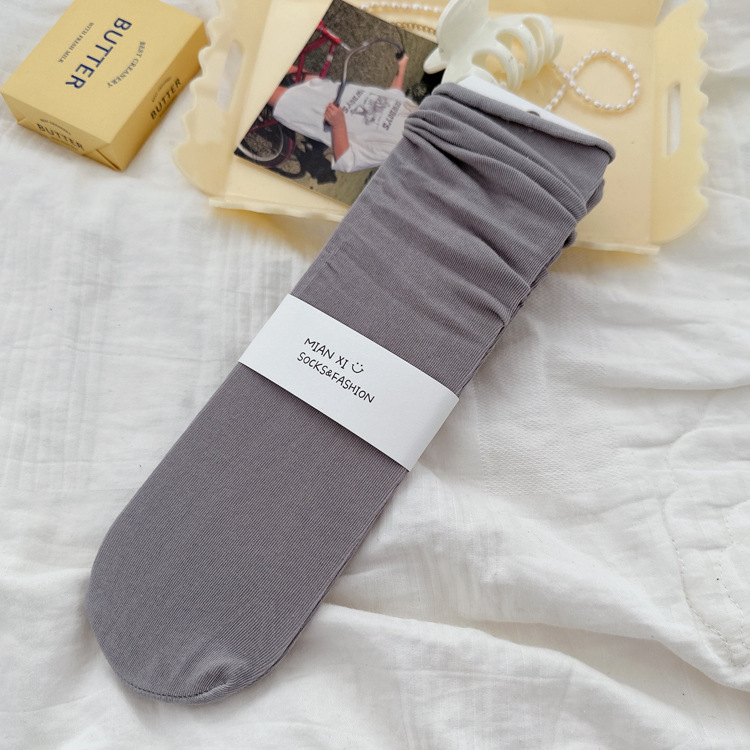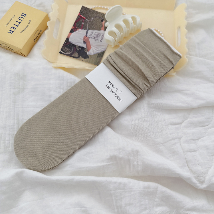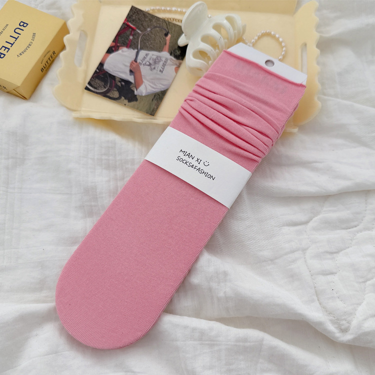 양말 여성용 봄과 여름 검정과 흰색 중간 길이 양말 한국 통기성 얇은 단색 스택 캔디 컬러 여성 양말 Sakagiya