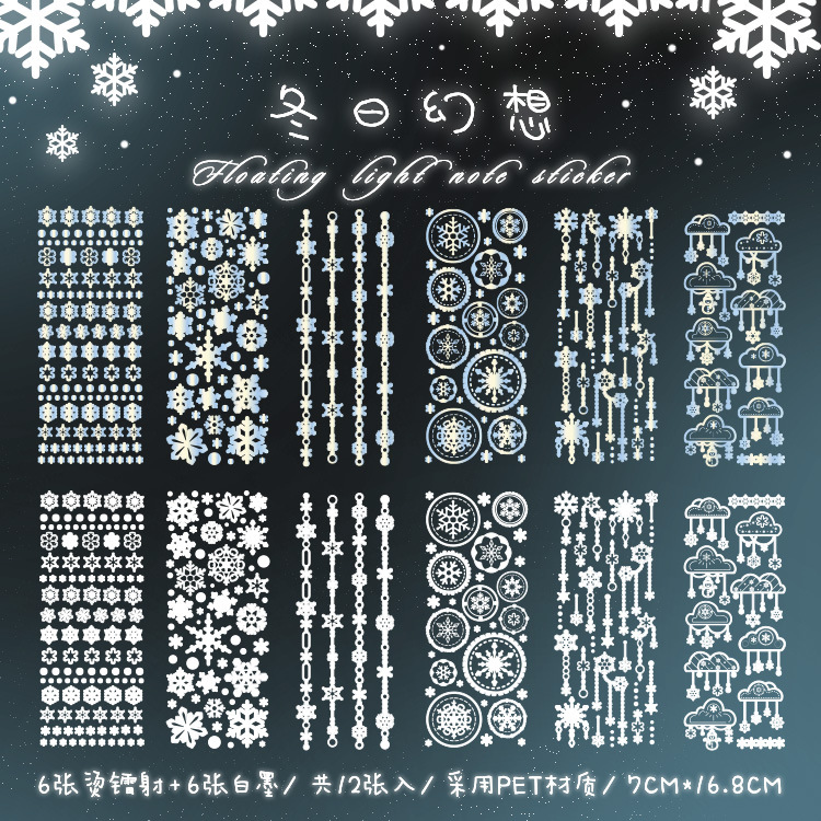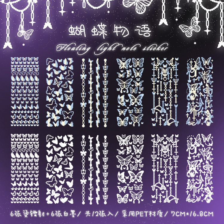 12 부동 빛 노트 애완 동물 스티커 그라디언트 레이저 핫 실버 DIY goo 카드 손 계정 장식 기본 철자 재료 스티커스토어 가기