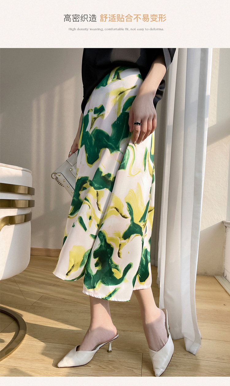 플로럴 스커트 여성용 2023 새로운 프랑스 스타일 유화 인쇄 아세트산 새틴 피쉬 테일 스커트 하이 웨이스트 우아한 미디 스커트스토어 가기