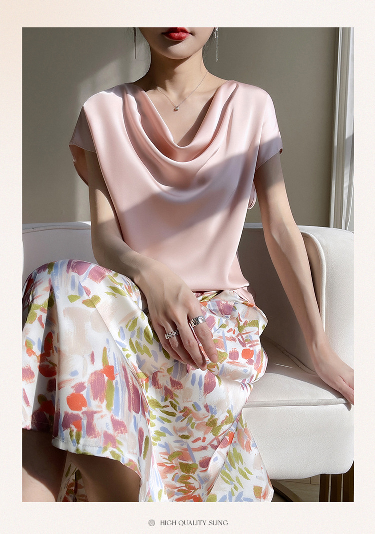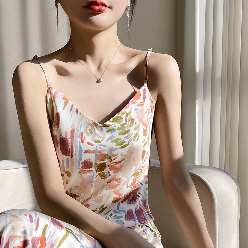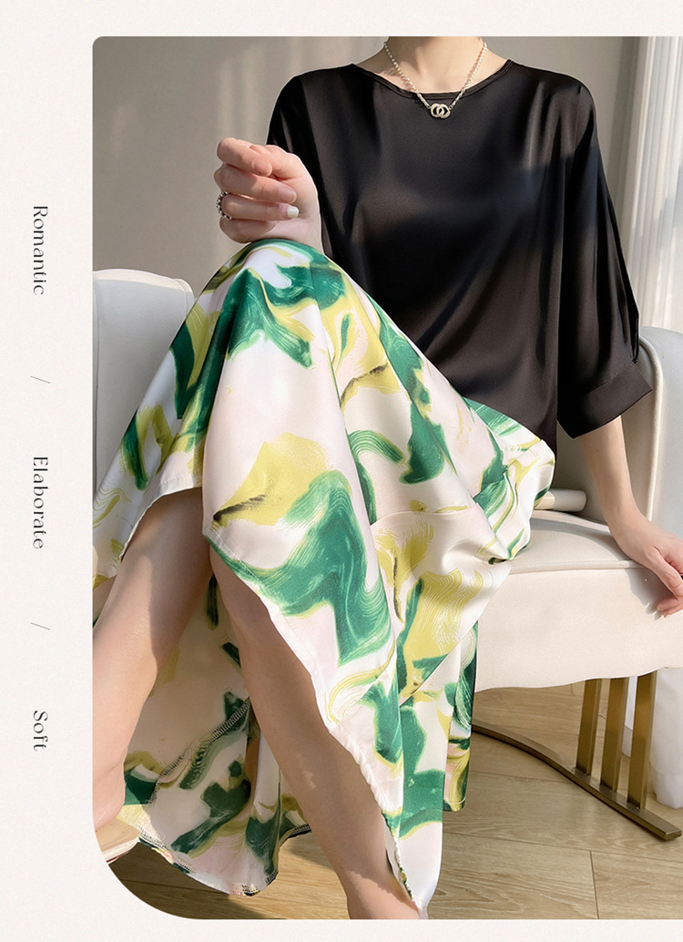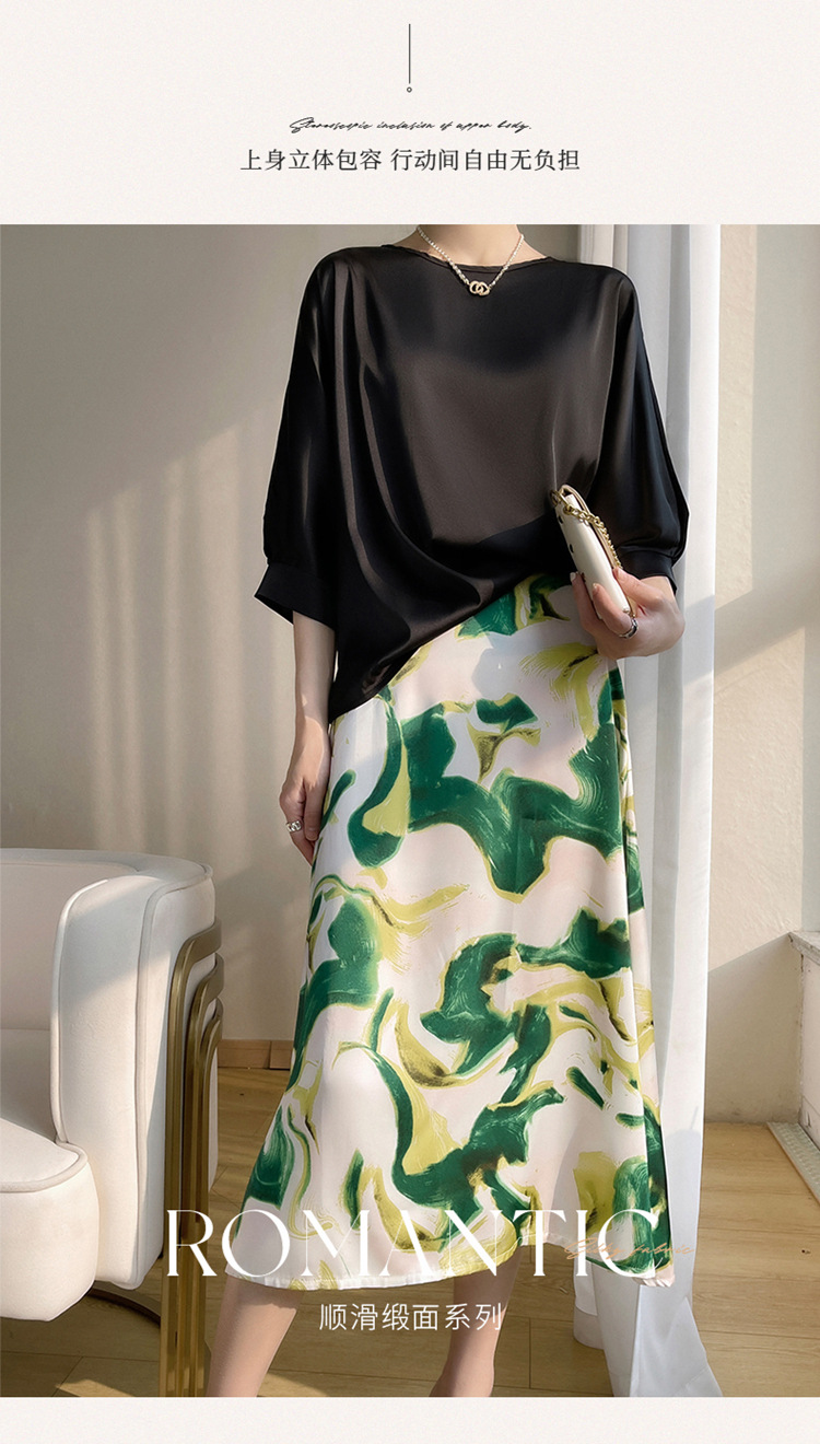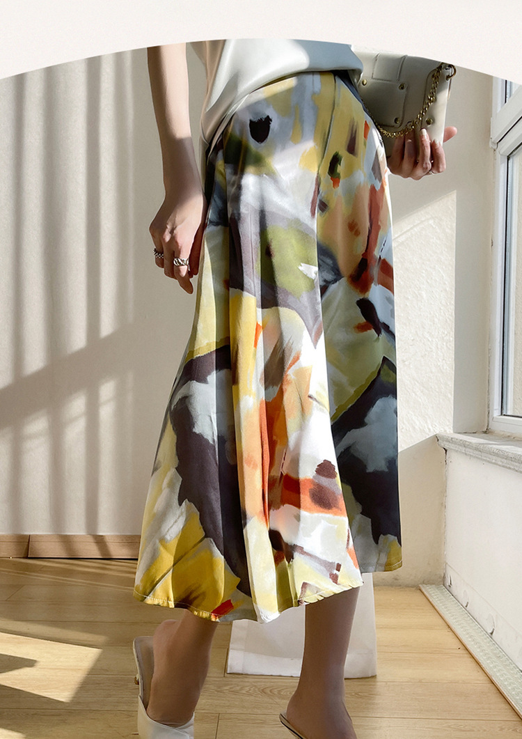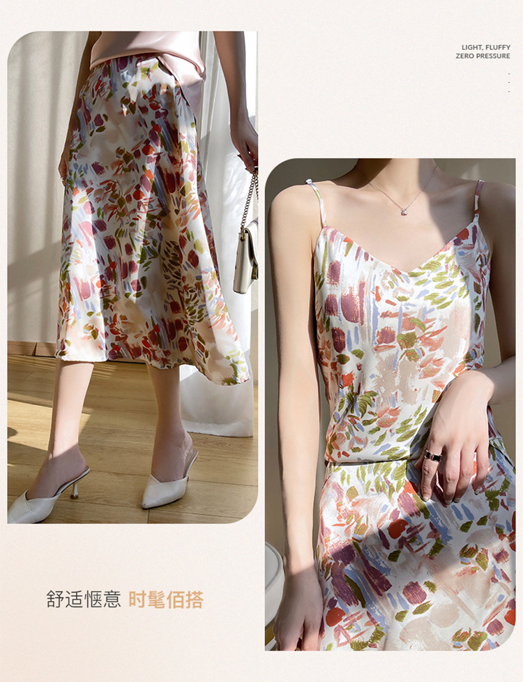 플로럴 스커트 여성용 2023 새로운 프랑스 스타일 유화 인쇄 아세트산 새틴 피쉬 테일 스커트 하이 웨이스트 우아한 미디 스커트