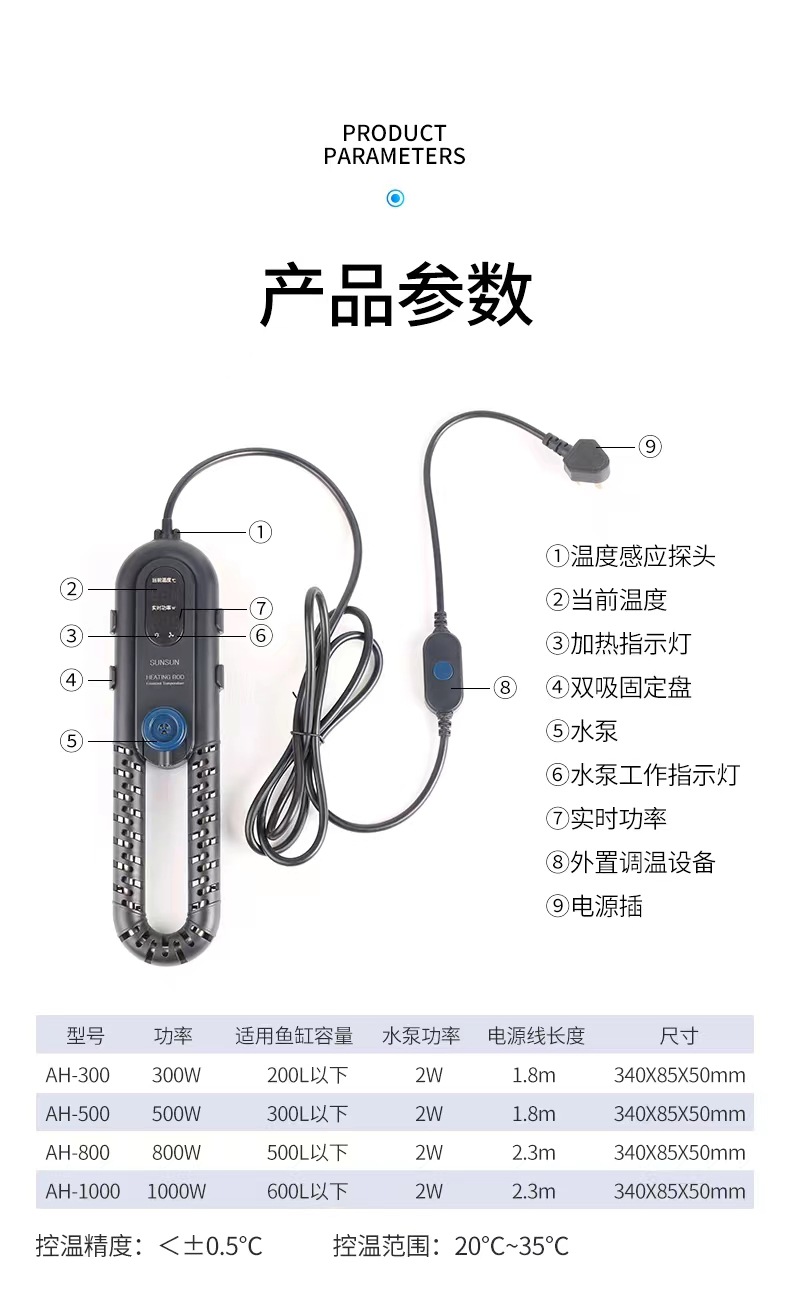 AH 어항 히팅 로드 자동 일정 온도 수족관 히팅 로드 주파수 변환 절전 방폭 난방 균형 수온