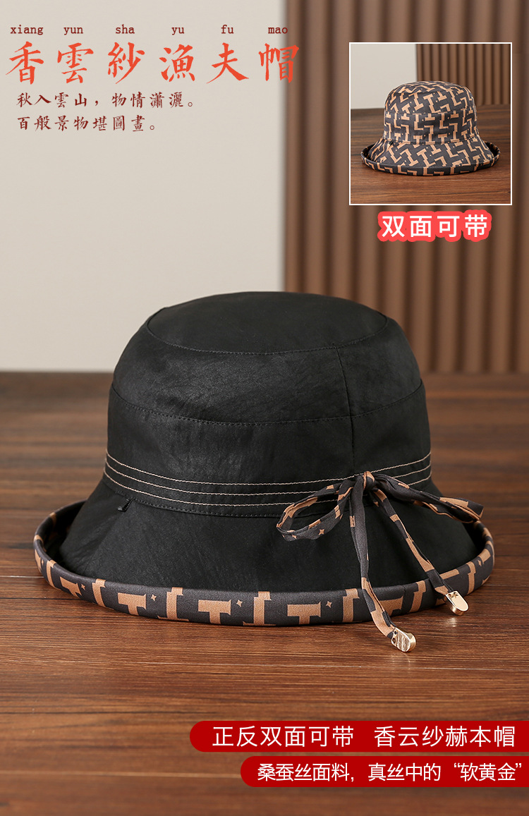 Buta Xiangyun 원사 모자 여성용 여름 양면 자외선 차단제 차양 모자 무거운 뽕나무 실크 거북이 패턴 오래된 재료 봄과 가을 0668
