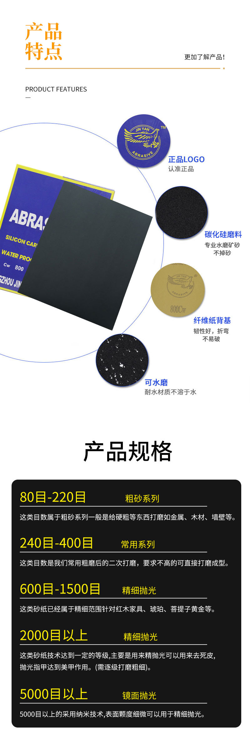 Jinyan Eagle 브랜드 물 연삭 사포 Jade Wenwan 연마 두껍고 미세한 사포 7000 메쉬 자동차 실리콘 카바이드 물 연삭 사포스토어 가기