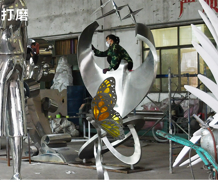 야외 광장 추상 캠퍼스 스테인레스 스틸 조각 현대 부동산 금속 중공 모양 바닥 물 풍경 장식
