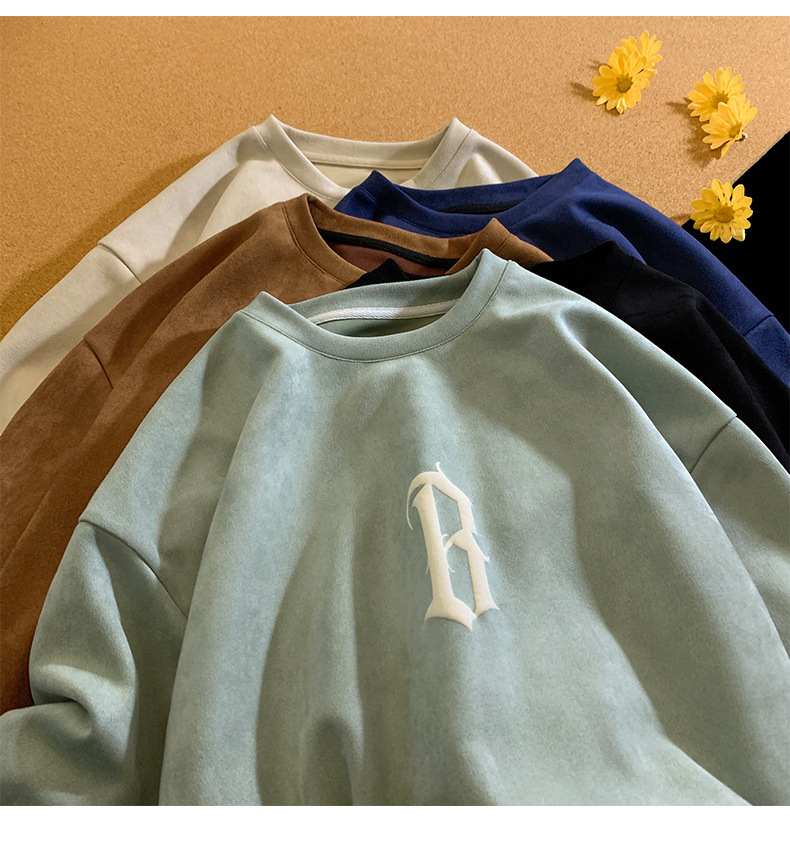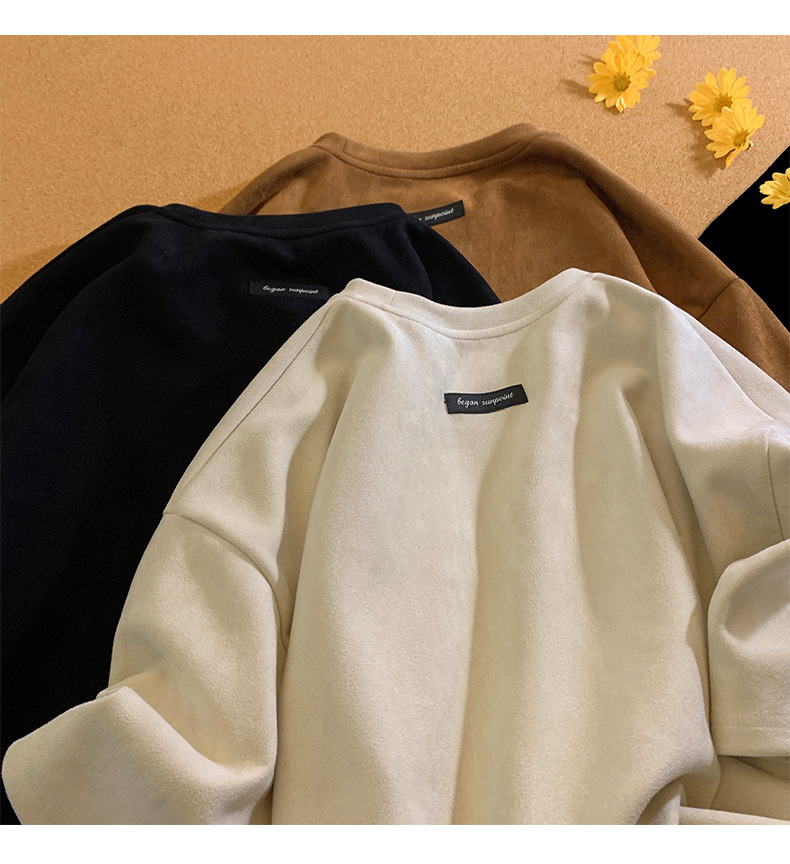스웨이드 유럽과 미국 패션 브랜드 트렌디 한 반팔 티셔츠 남성용 오버사이즈 헤비 올 매치 아메리칸 하이 스트리트 반팔 티셔츠