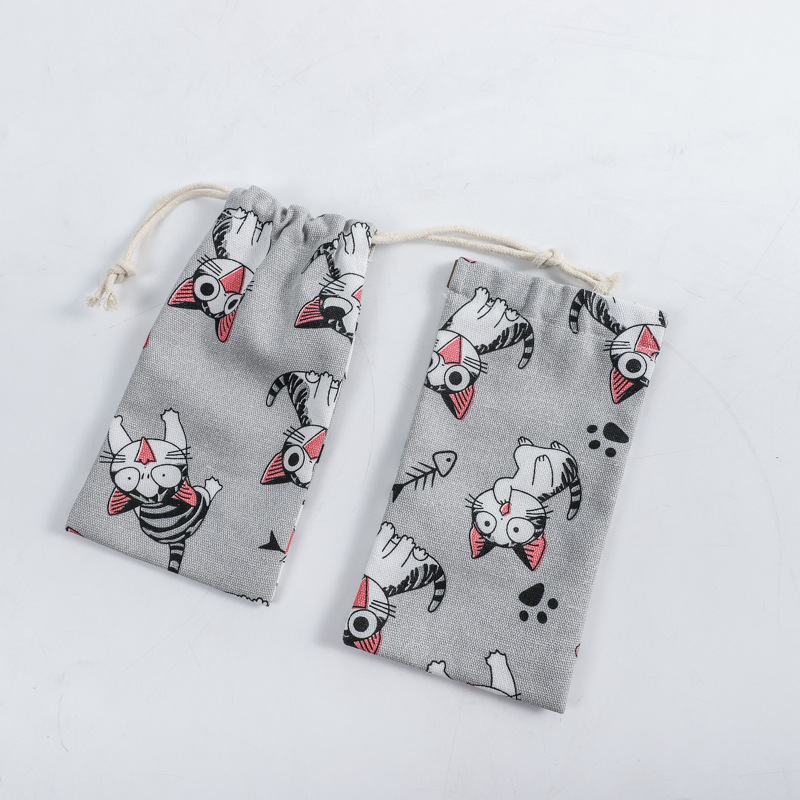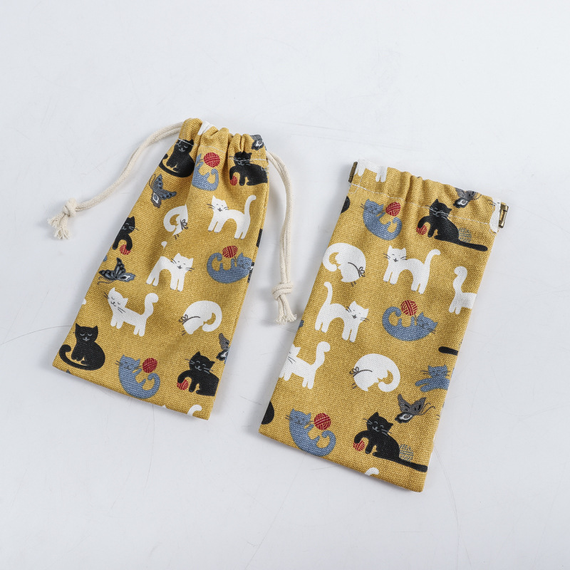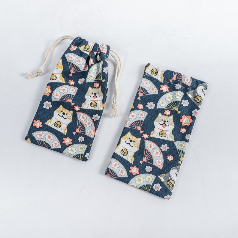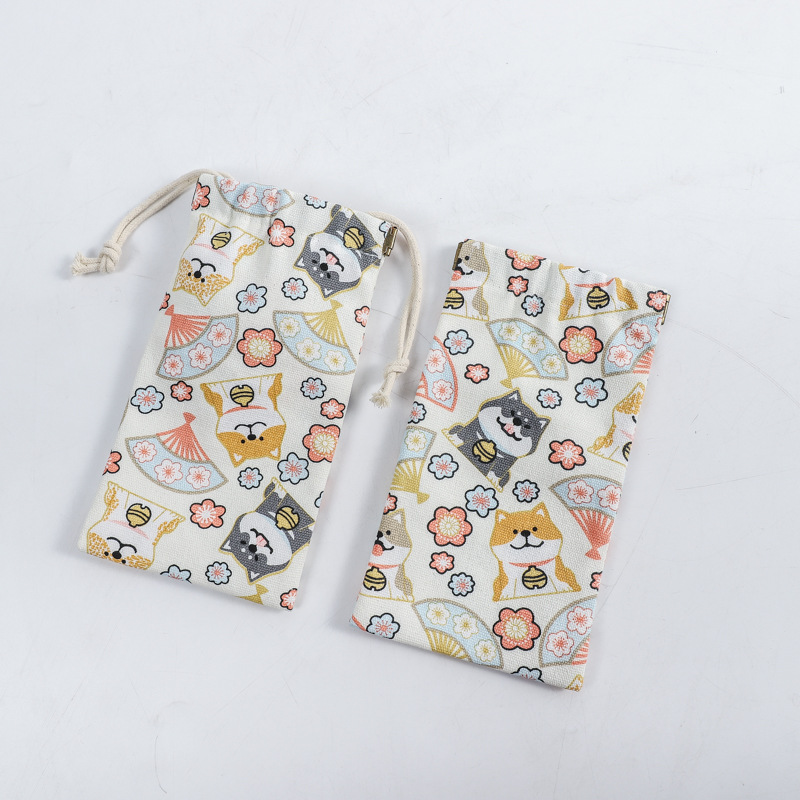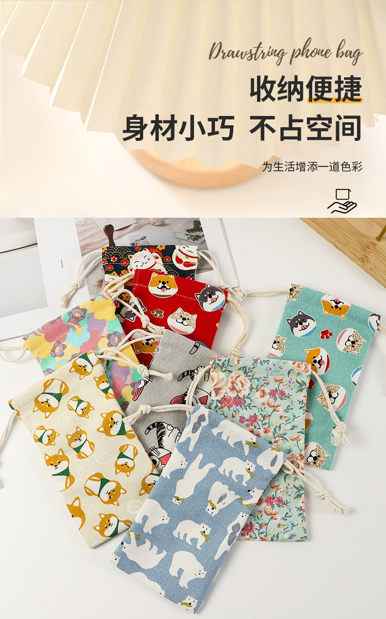 행운의 고양이와 일본풍 프린트 캔버스 동전 지갑, 보석/립스틱/끈 조임식 주머니, 안경/휴대폰 수납 가방