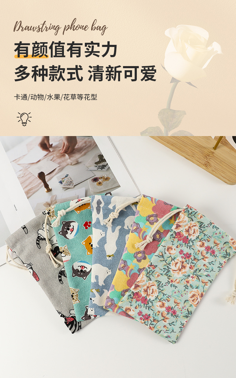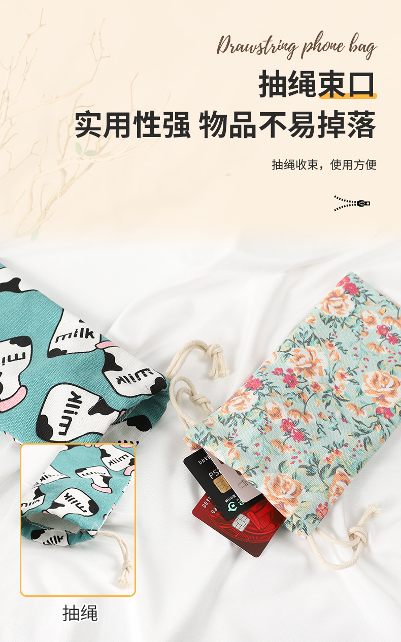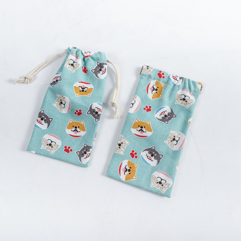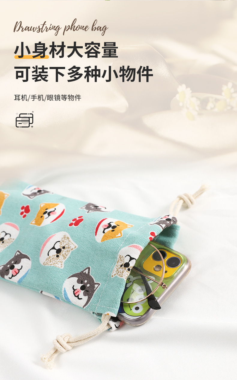 행운의 고양이와 일본풍 프린트 캔버스 동전 지갑, 보석/립스틱/끈 조임식 주머니, 안경/휴대폰 수납 가방