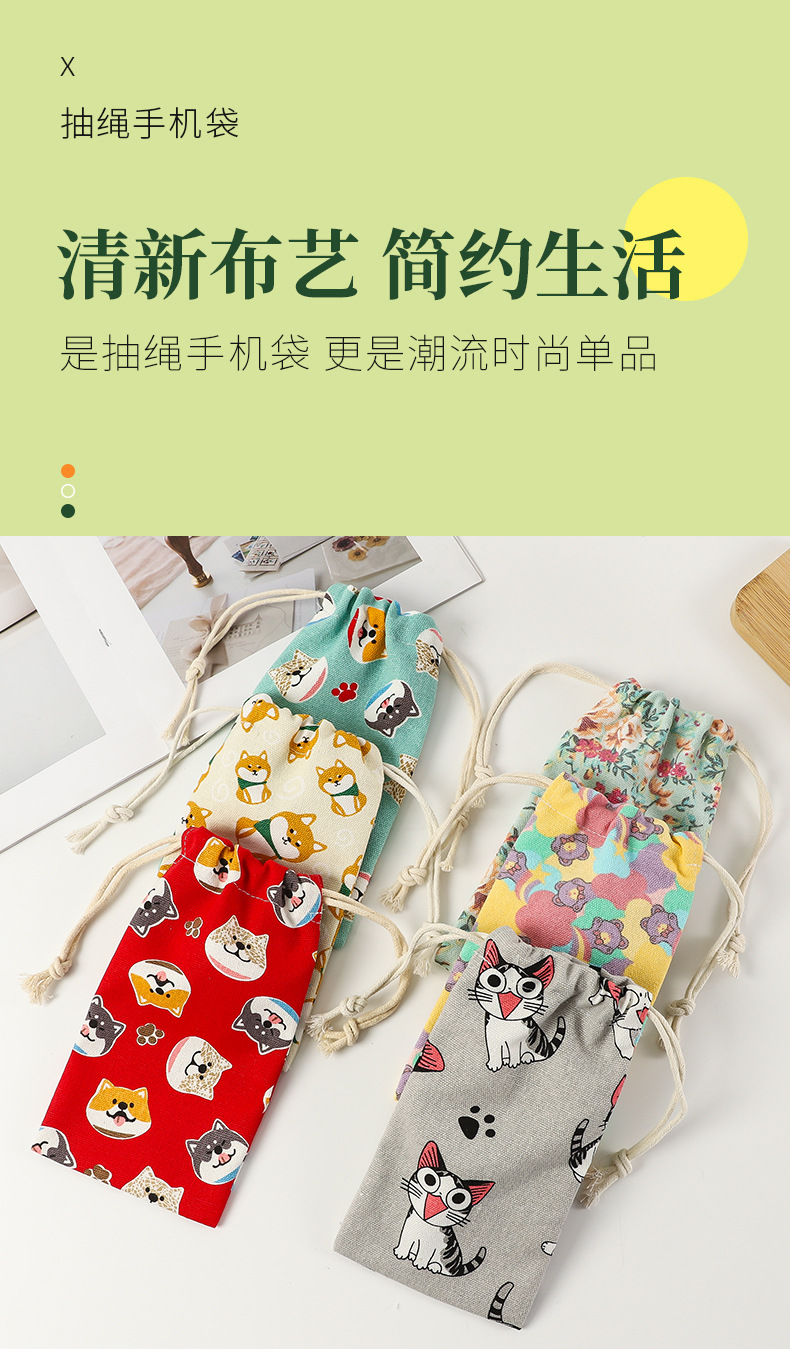 행운의 고양이와 일본풍 프린트 캔버스 동전 지갑, 보석/립스틱/끈 조임식 주머니, 안경/휴대폰 수납 가방스토어 가기