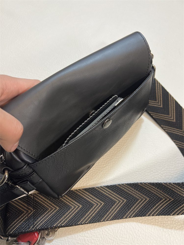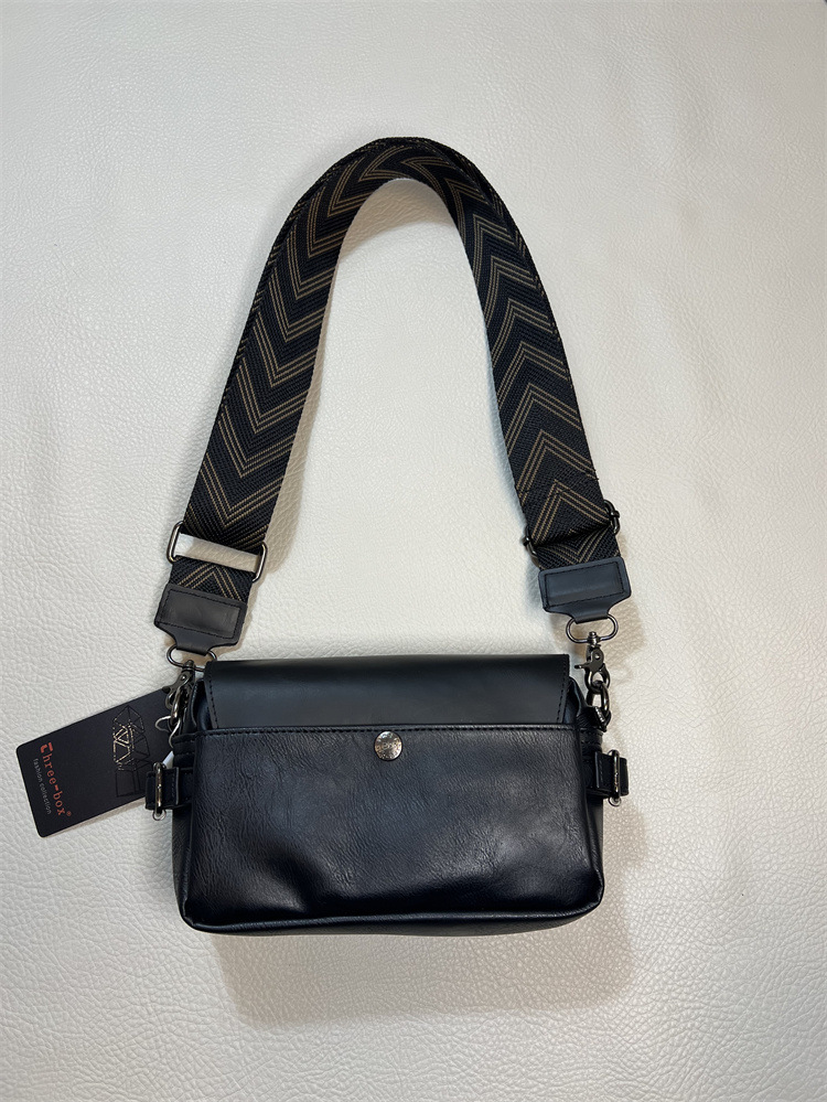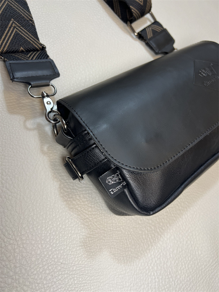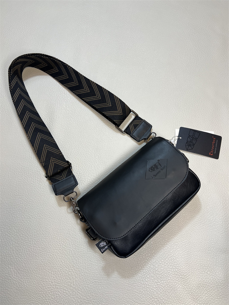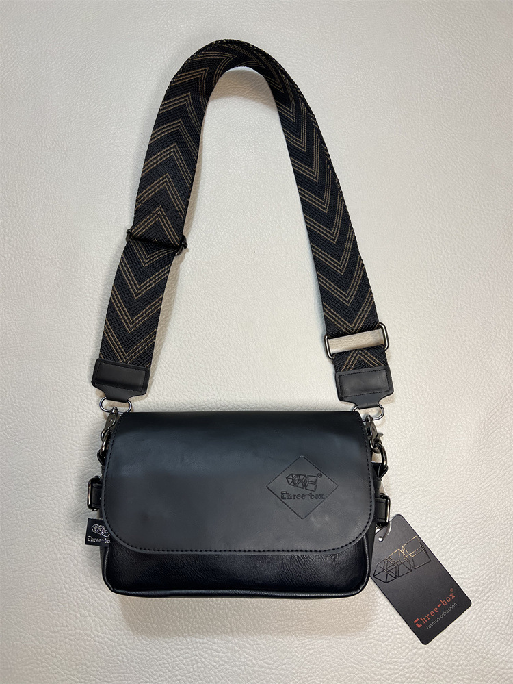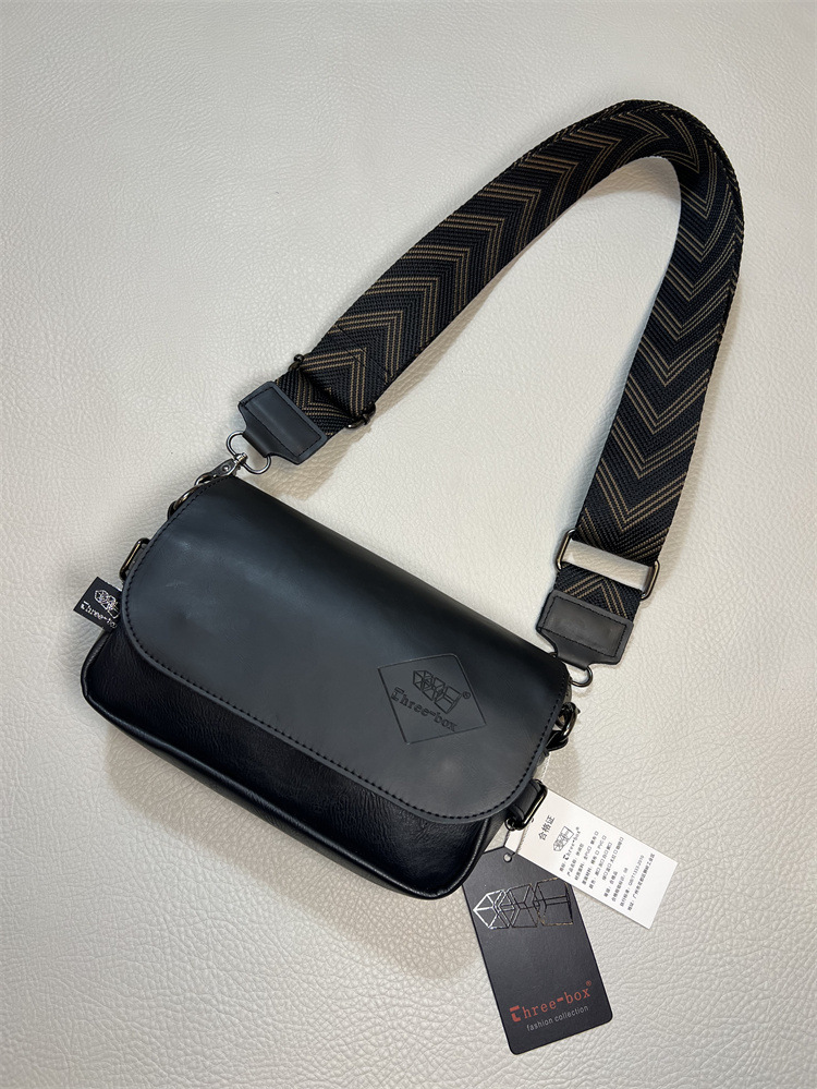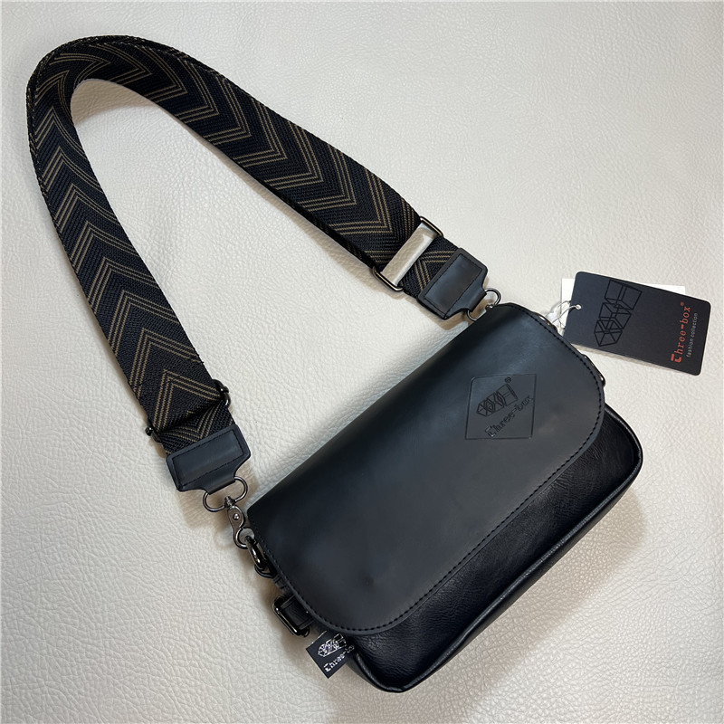 three-box新品男士单肩包 休闲条纹彩带斜挎包 日系翻盖男女背包