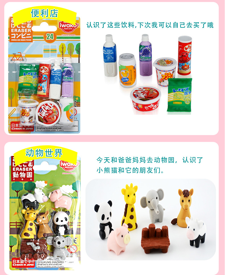 도매 일본 이와코 만화 분리 가능한 조합 장난감 선물 문구 세트 선물 재미 지우개스토어 가기