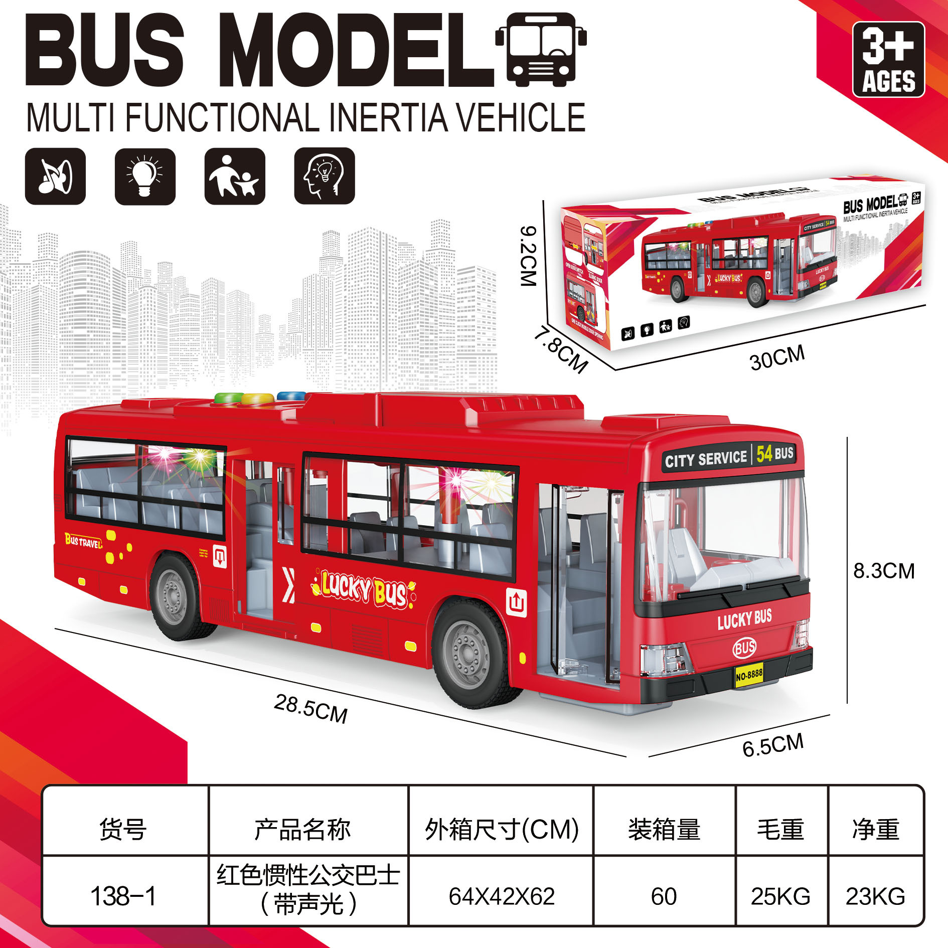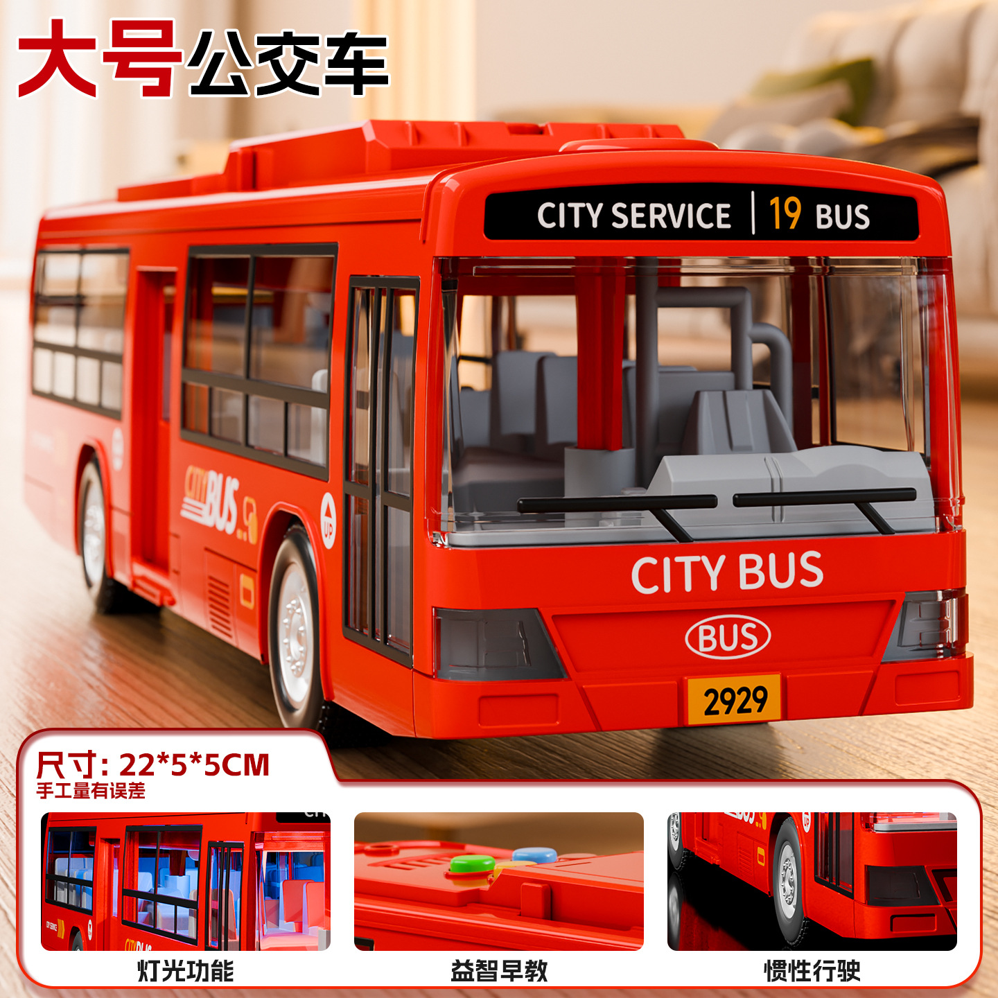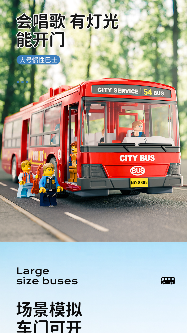 • 충전식 빨간 버스 [소리와 빛의 이야기/문을 열 수 있음]