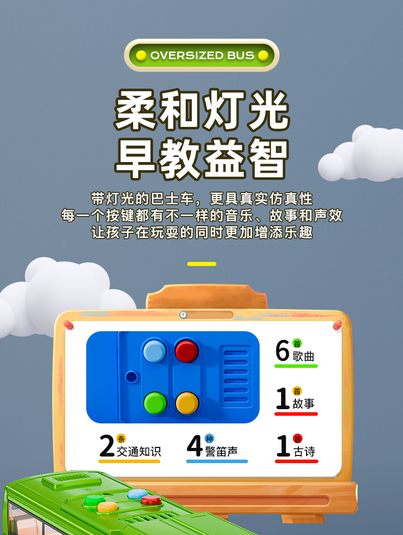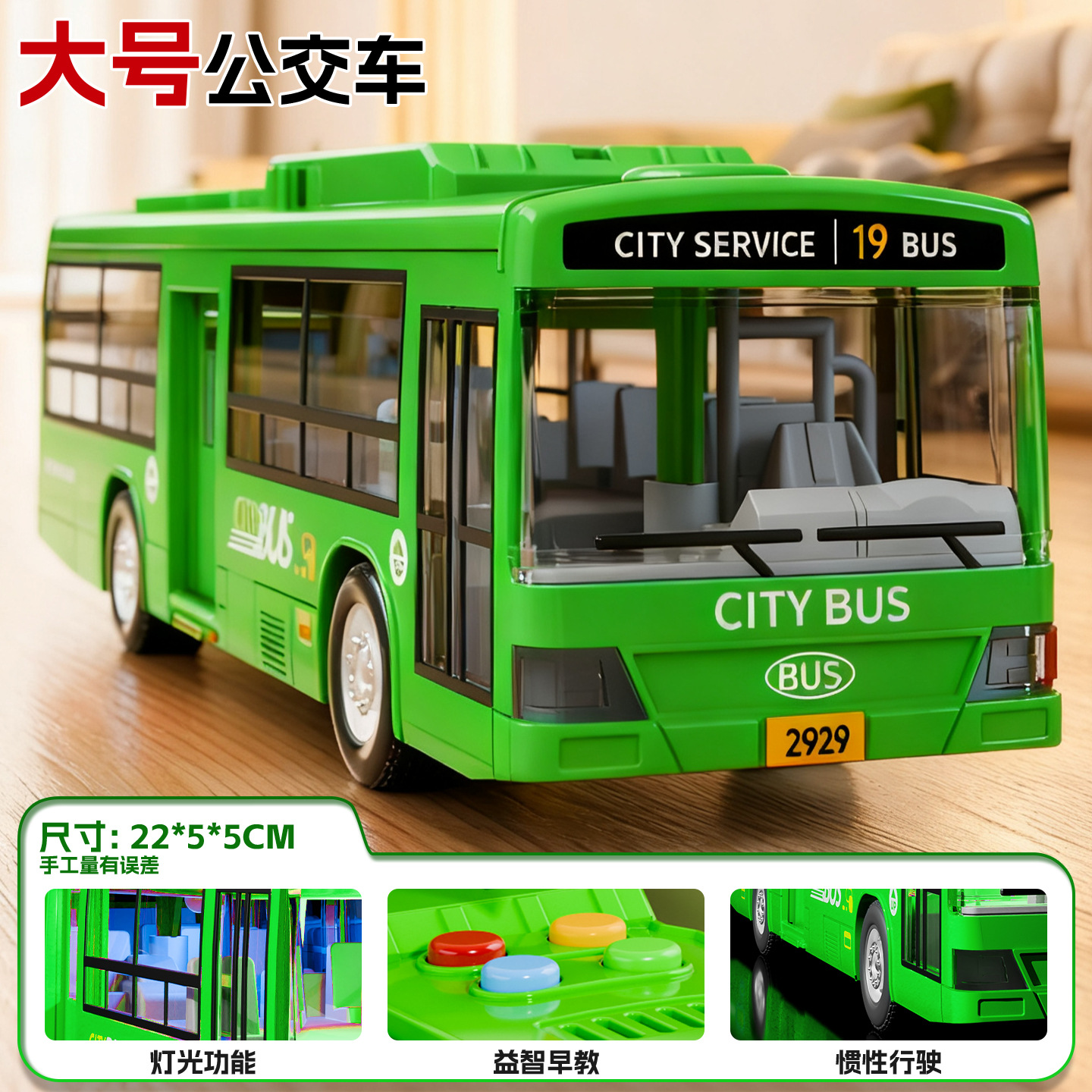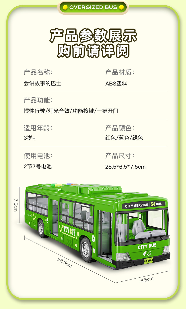 • 충전식 녹색 버스 [소리와 빛의 이야기/문을 열 수 있음]