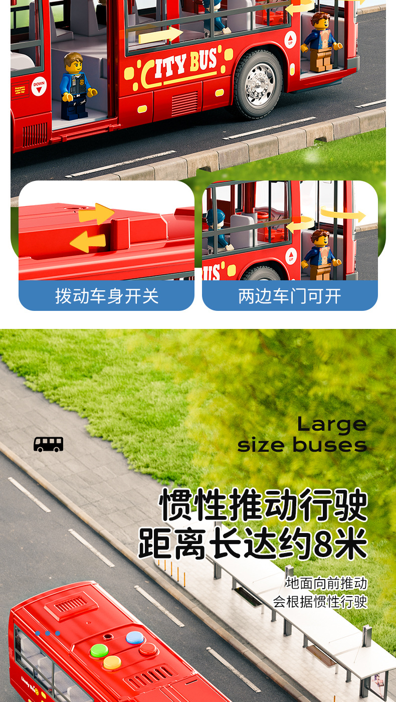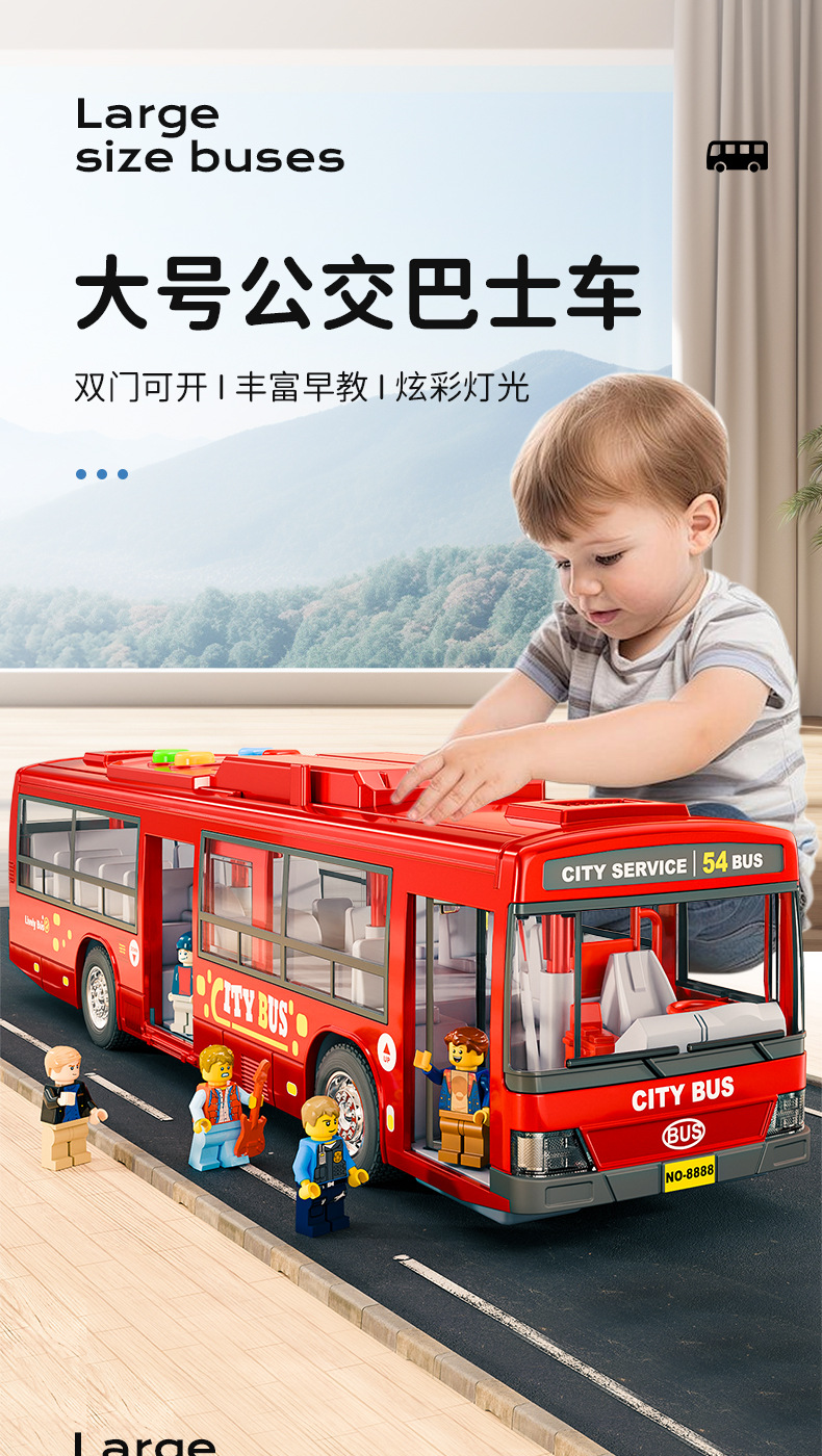 어린이 버스 장난감 대형 오픈 도어 버스 모델 시뮬레이션 아기 버스 장난감 버스 소년스토어 가기