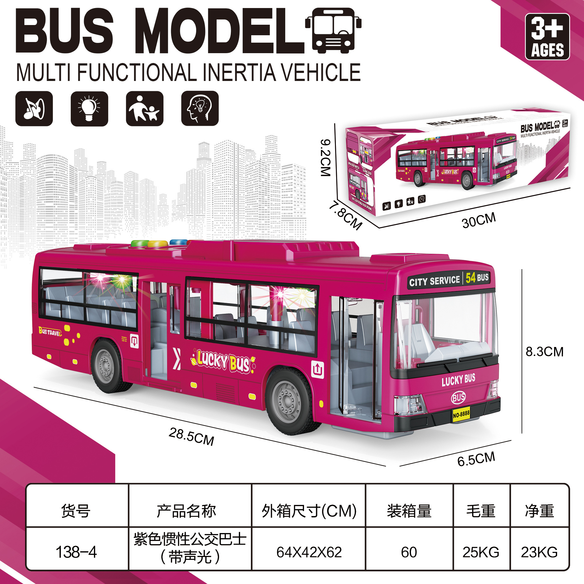 • 충전식 파란색 버스 + 인형 3개