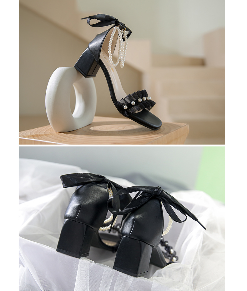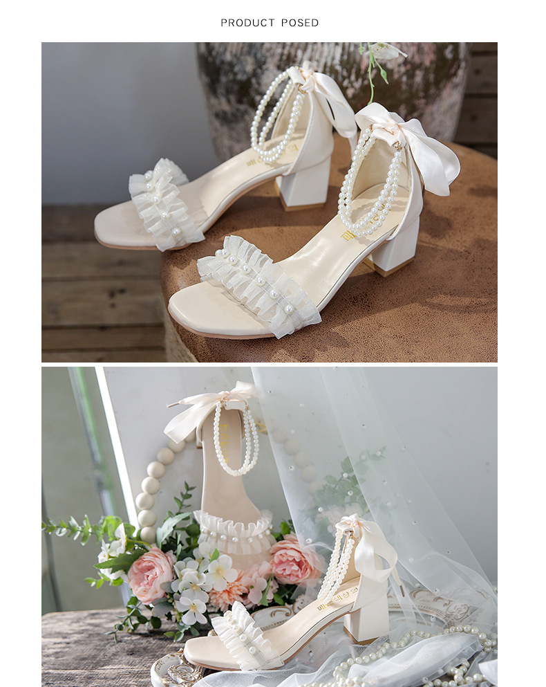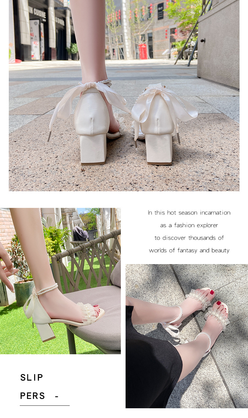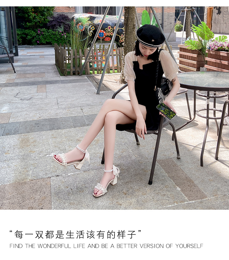샌들 여성용 2023 여름 유행 청키 힐 편안한 한 단어 밴드 프랑스 진주 한국 스타일 미드 힐 우아한 여성 트렌디 샌들스토어 가기