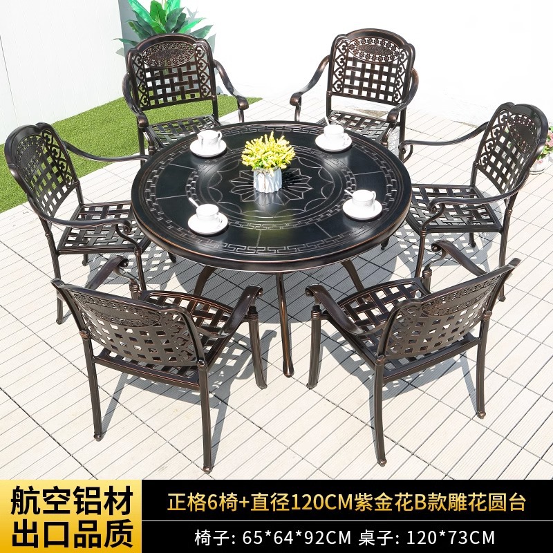 • Zhengge 6 의자 [쿠션 배송] + 120cmB 직경 Zijin 꽃 원형 테이블