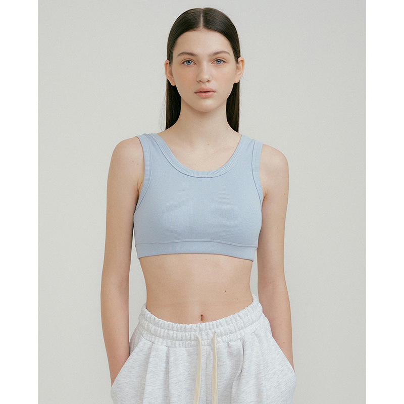 봄과 여름 새로운 와이드 숄더 스트랩 스레드 피트니스 속옷 조끼 세로 스트라이프 짧은 마카롱 컬러 U 자형 아름다운 백 브라