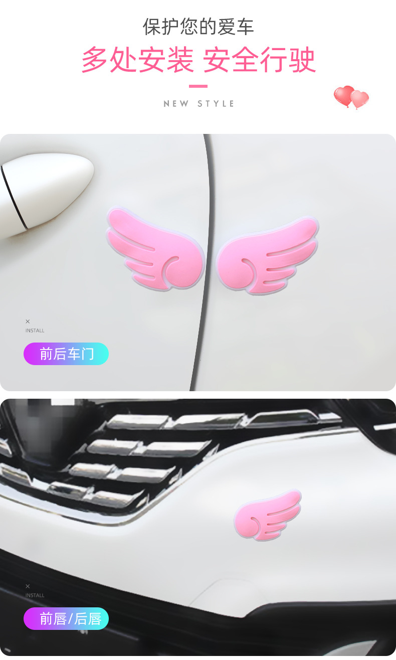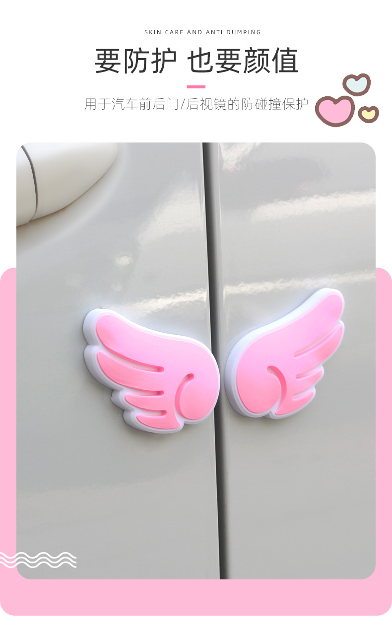 자동차 충돌 방지 스티커 만화 귀여운 천사 날개 자동차 도어 스크래치 방지 장식 스티커 백미러 보호 스크래치 방지 스트립