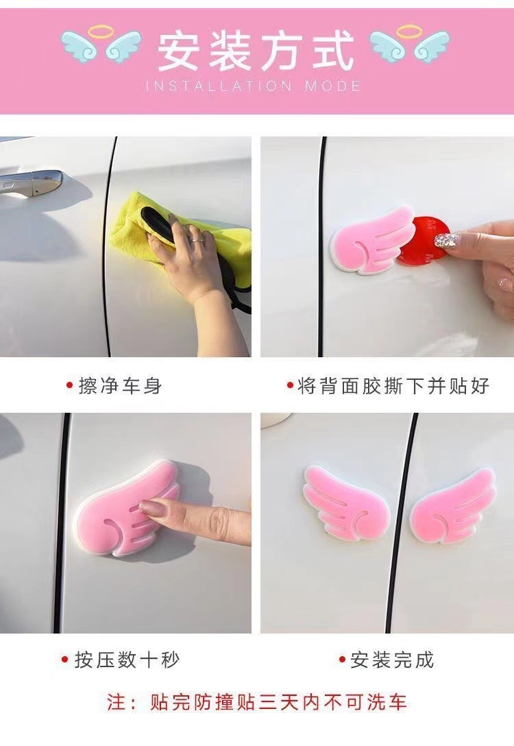 자동차 충돌 방지 스티커 만화 귀여운 천사 날개 자동차 도어 스크래치 방지 장식 스티커 백미러 보호 스크래치 방지 스트립스토어 가기