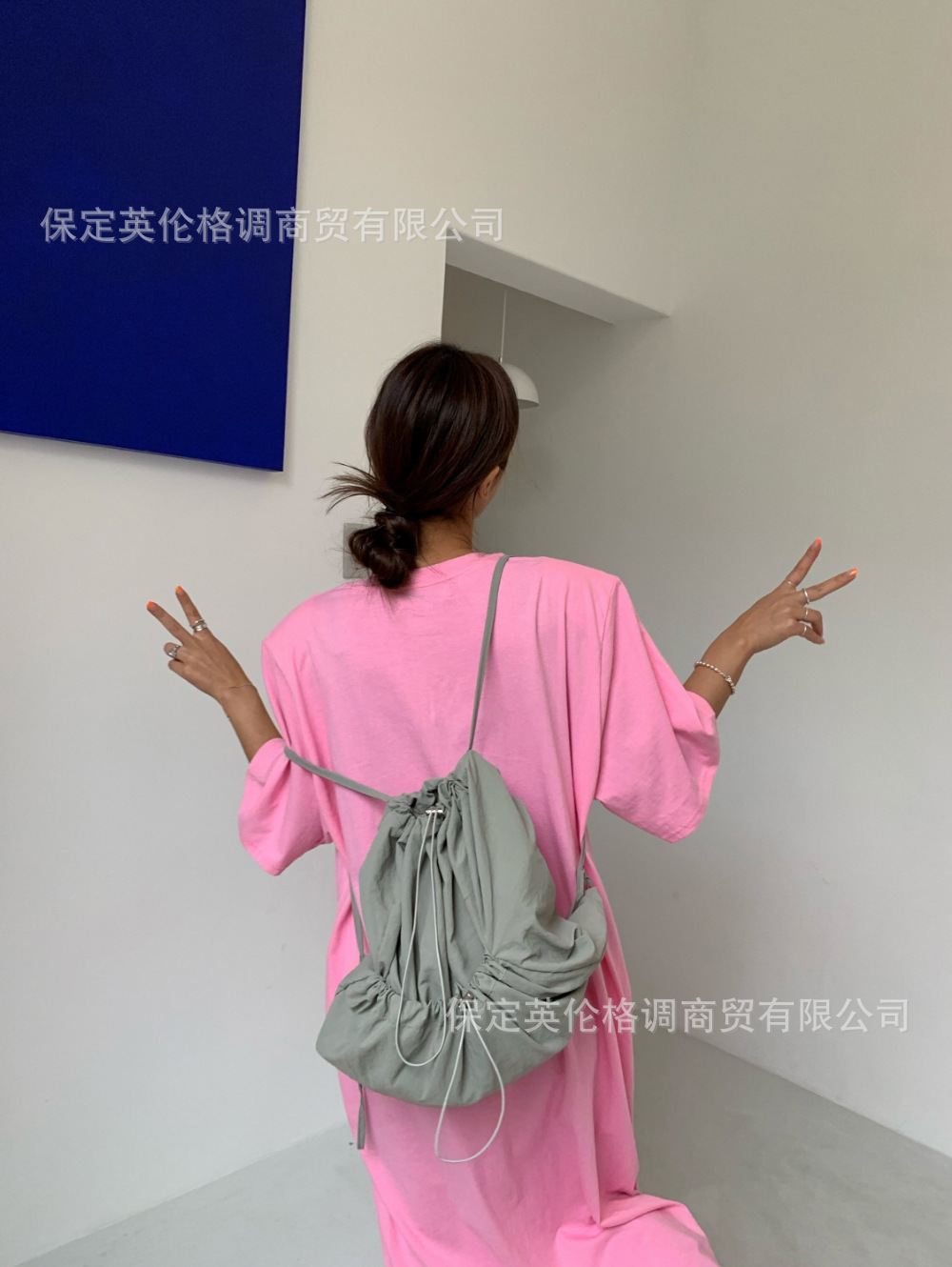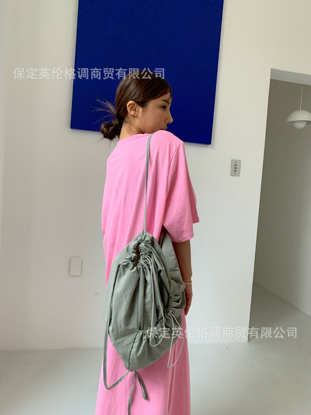 한국 새로운 나일론 졸라매는 끈 배낭 대용량 모든 일치 남여 공용 학생 휴대용 야외 캔버스 숄더스토어 가기