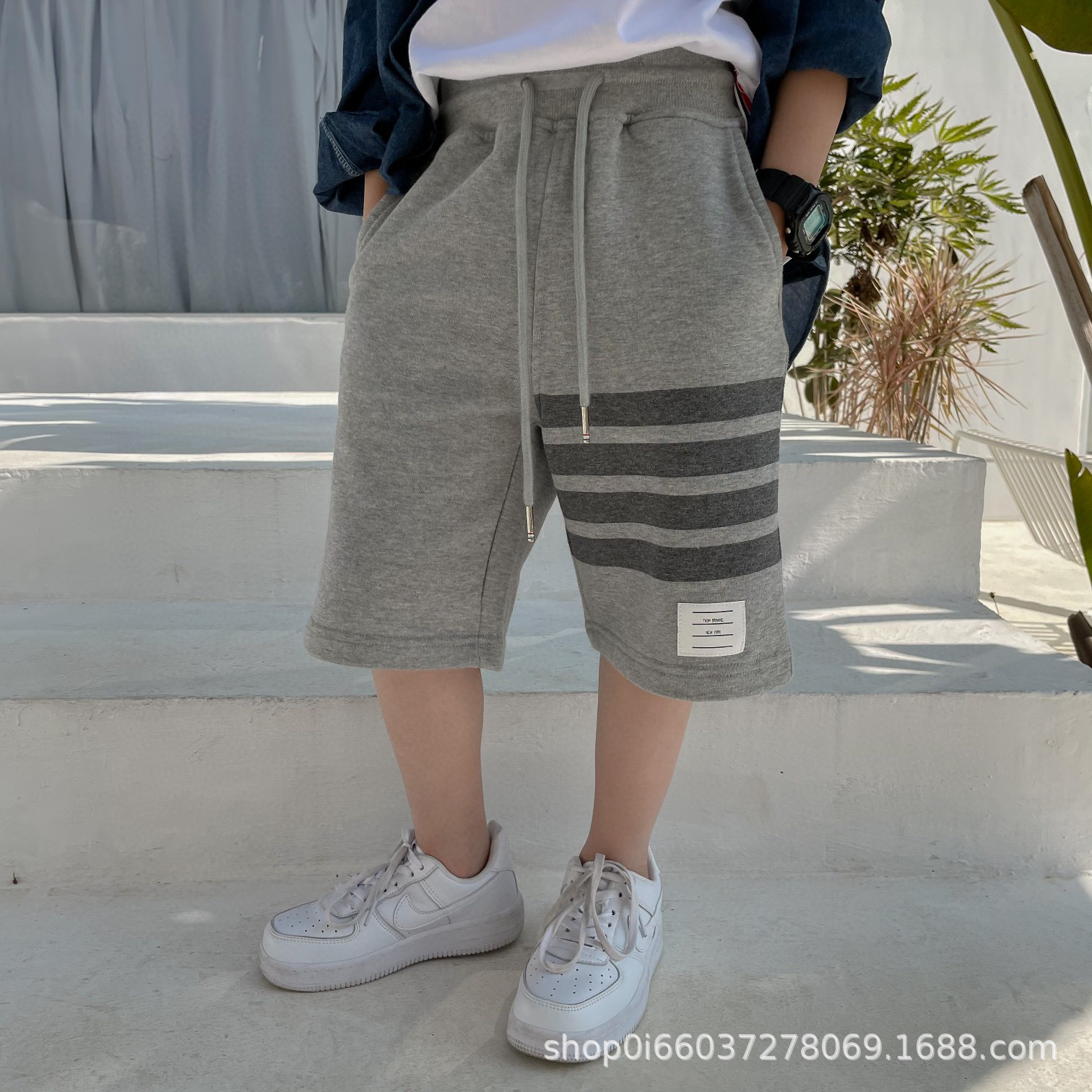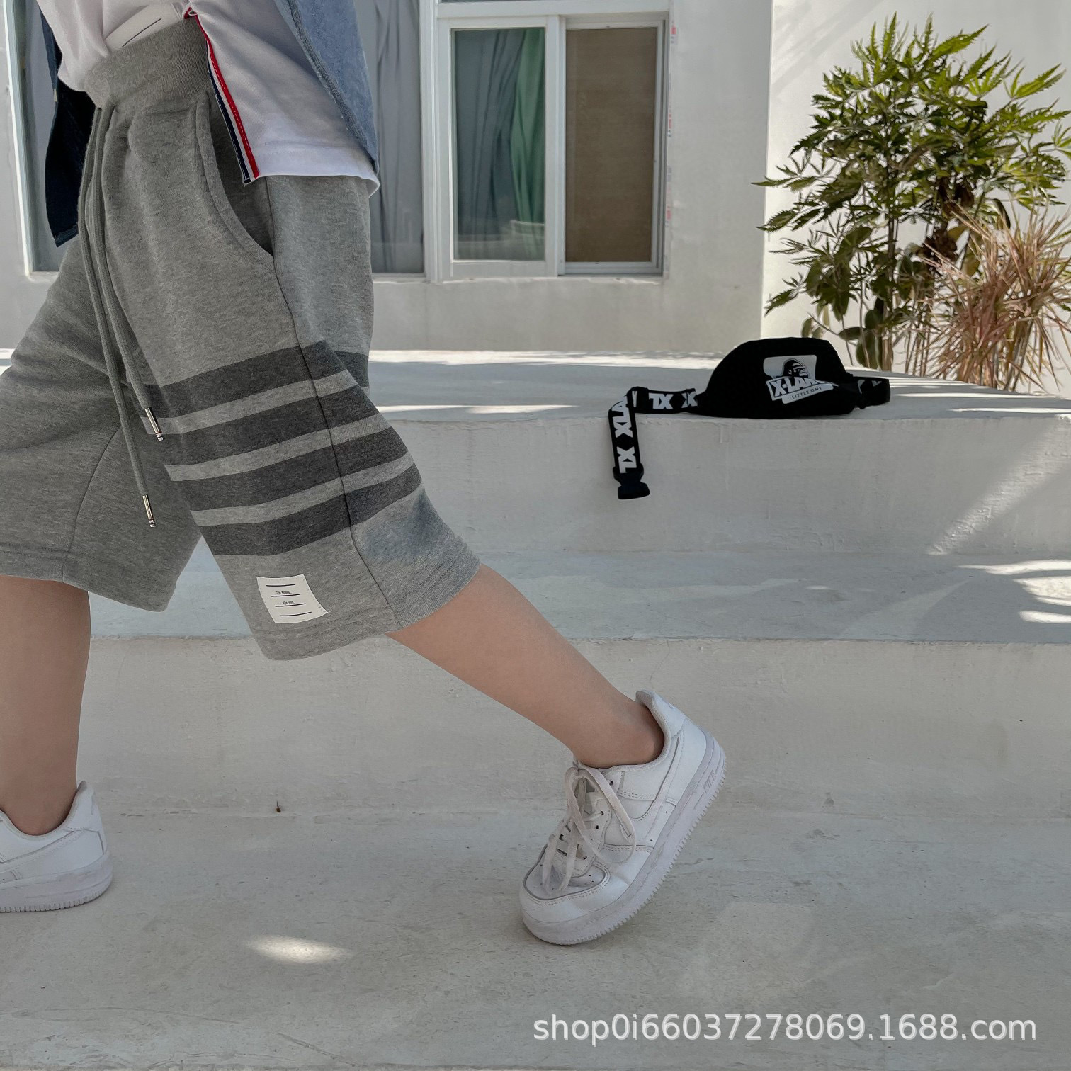 어린이 트렌디 브랜드 반바지 소년 TB 4 바 원사 염색 캐주얼 바지 아기의 면 느슨한 스포츠 바지