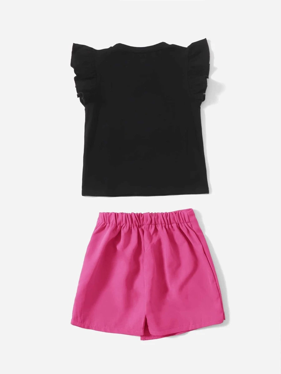 어린이 착용 유럽과 미국 봄과 여름 소녀 인쇄 편지 민소매 탑 귀여운 나비 반바지 어린이 세트