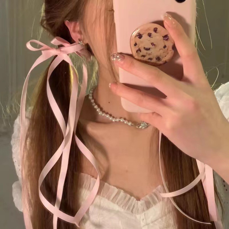 나비 꼰 머리 리본 넥타이 헤어 타이 더블 말꼬리 리본 헤어 액세서리 달콤한 머리핀 여성용 헤어밴드 머리핀 오리 빌 클립스토어 가기