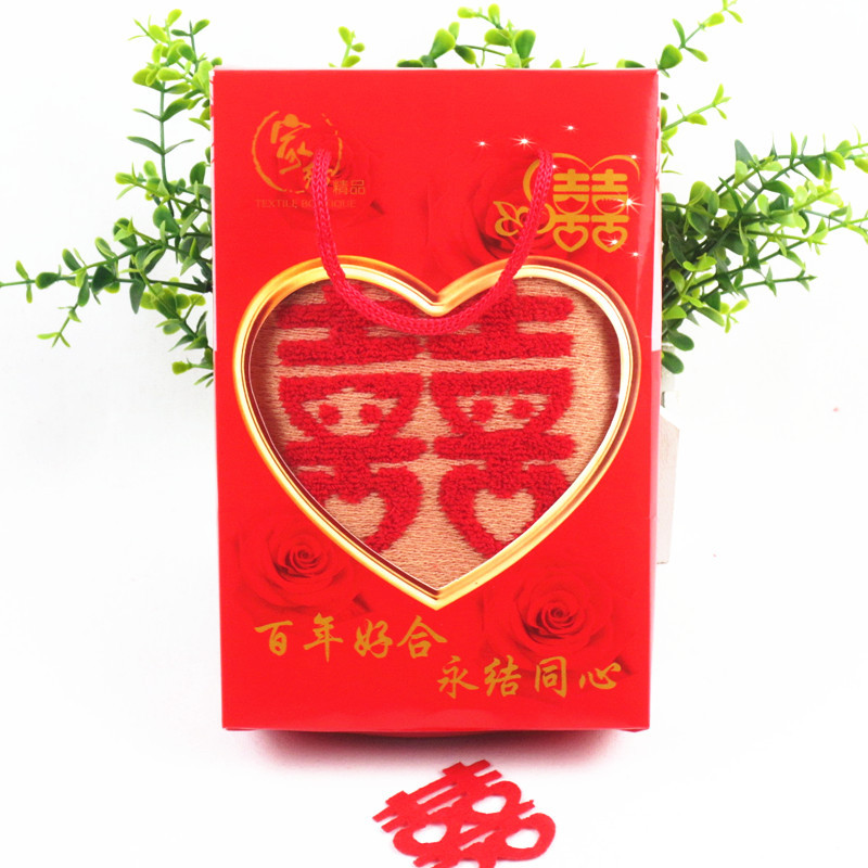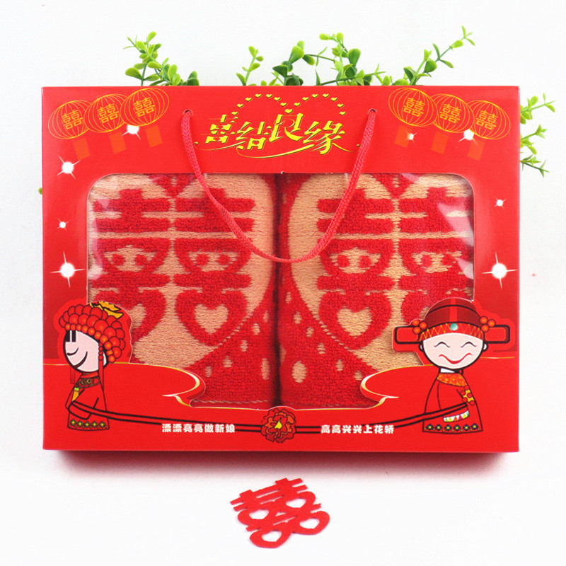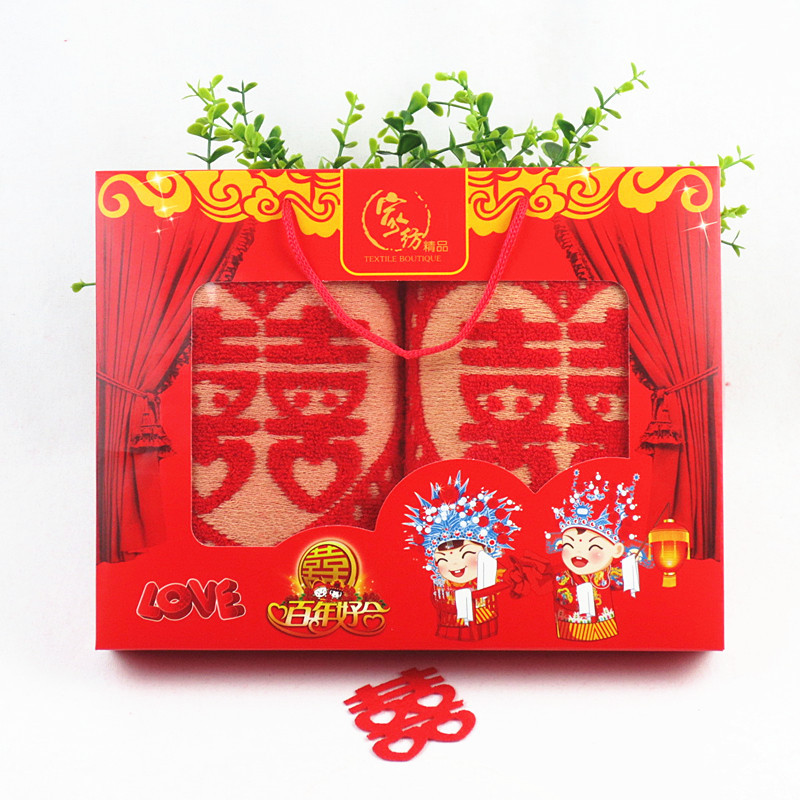 웨딩 타올 목화 쌍의 결혼 선물 타올 동반 선물 보름달 결혼식 빨간 얼굴 수건 행복한 캐릭터 선물 상자
