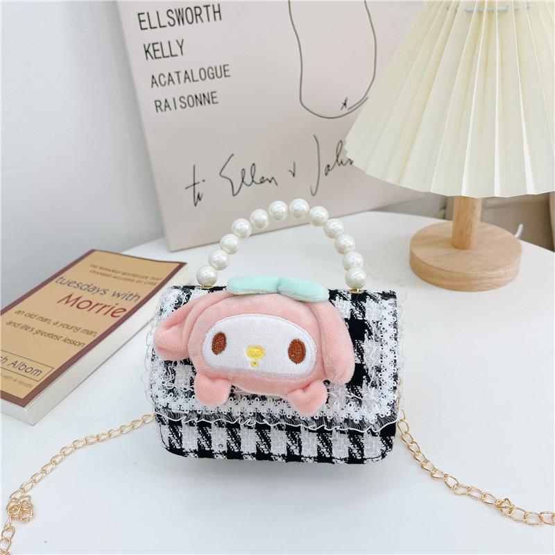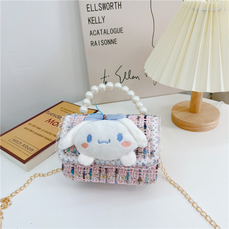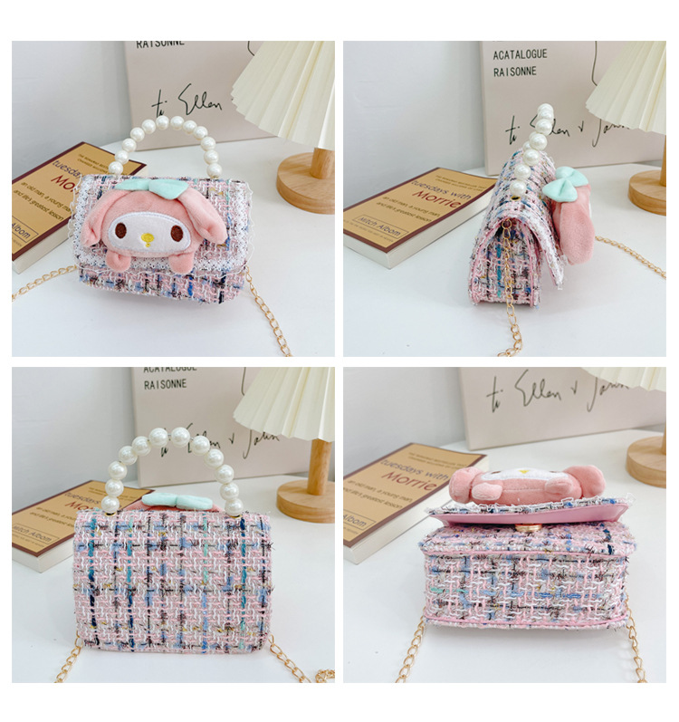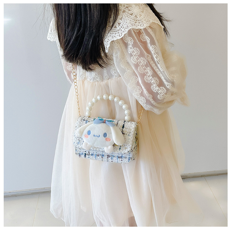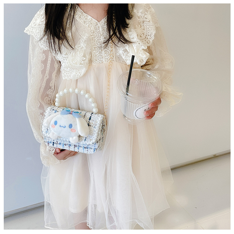 귀여운 어린이 작은 사각 가방 패션 진주 핸드백 트렌디 올 매치 체인 크로스바디 백 여아 변경 숄더백