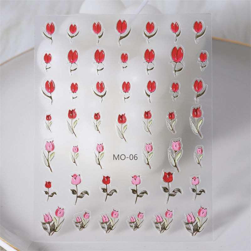 새로운 공예 네일 아트 5D 릴리프 페이스트 종이 그물 빨간 튤립 토끼 레트로 중공 릴리프 스테레오 네일 페이스트